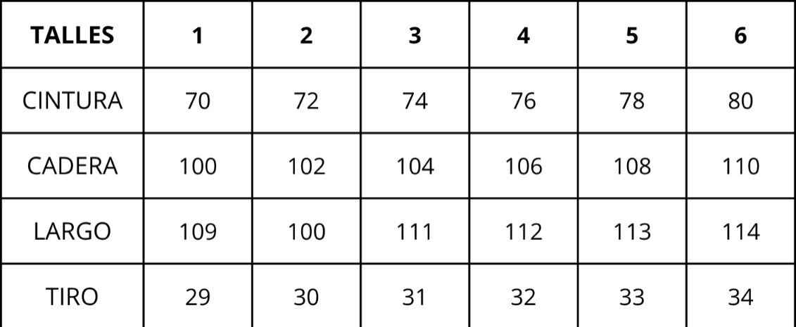 | Talles | 1, 2, 3, 4, 5, 6 |