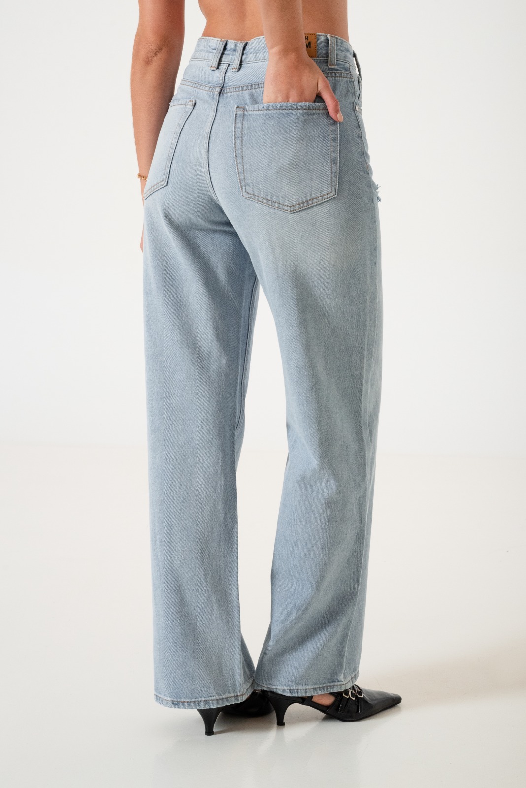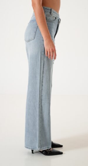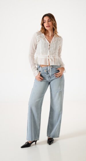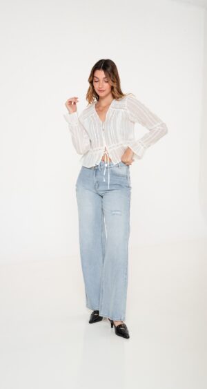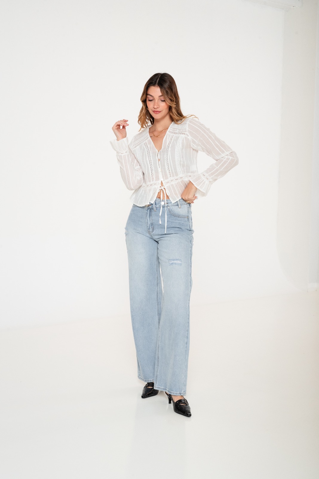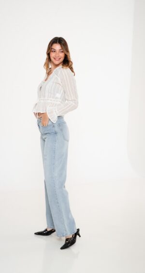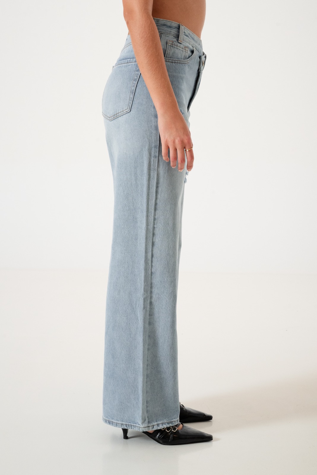 Jean estilo wid leg con detalle de boton cruzado, bolsillos, cierre y boton