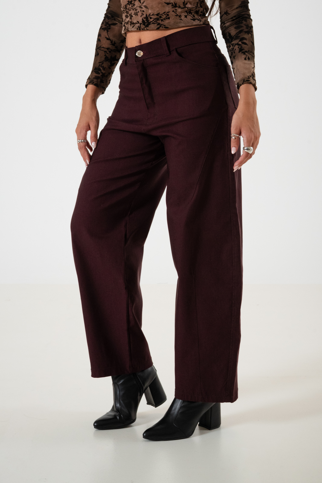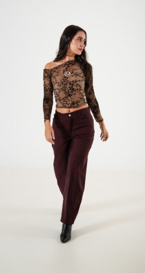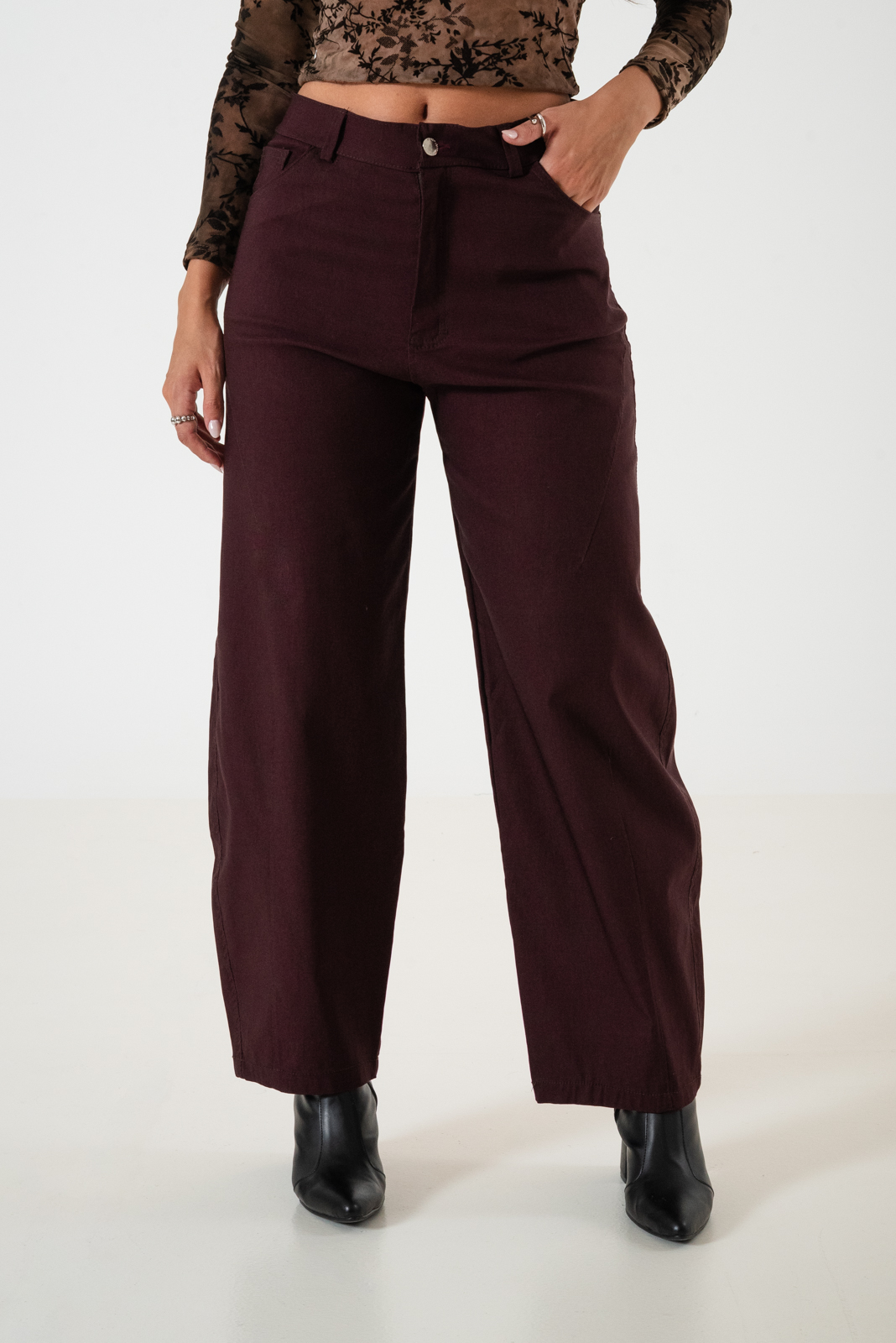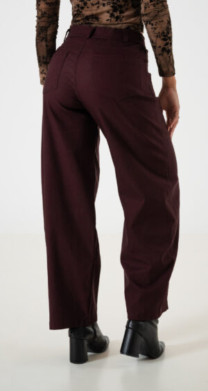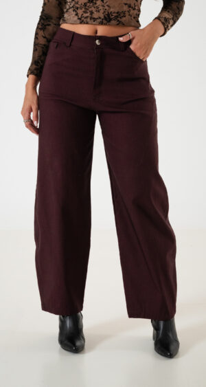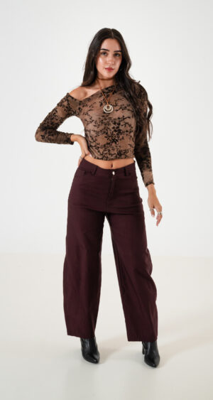 Pantalon estilo baloon confeccionado en tela de bengalina con detalle de bolsillos, pasacinto, cierre y boton