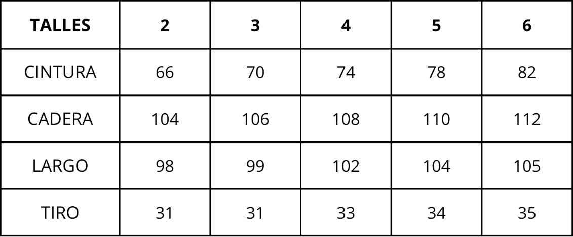 | Talles | 2, 3, 4, 5, 6 |