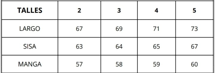 | Talles | 2, 3, 4, 5 |