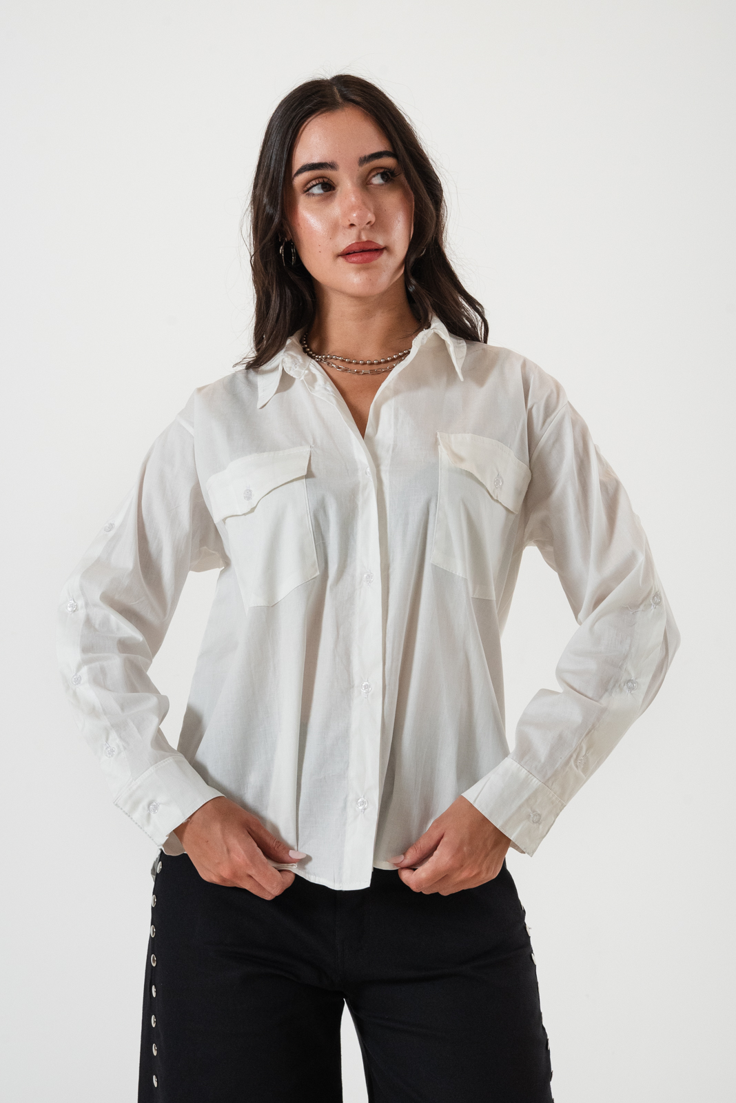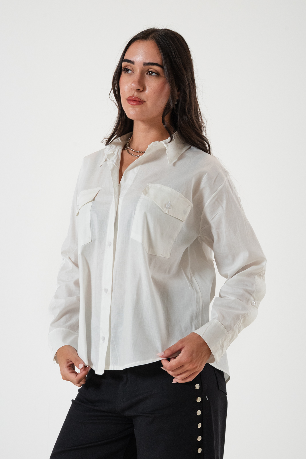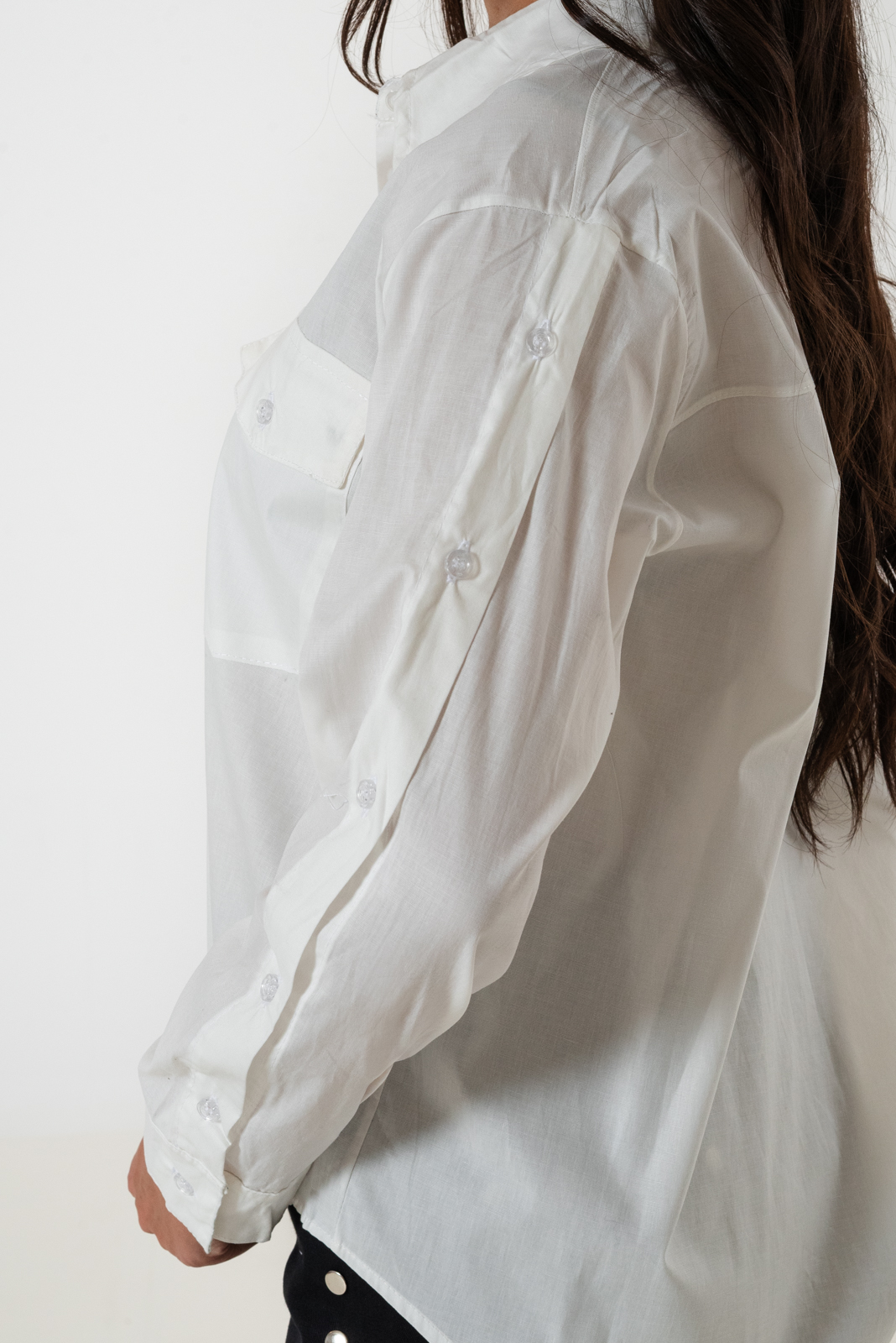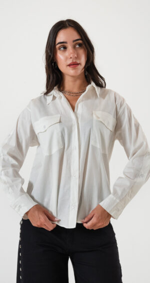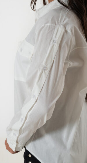 Camisa confeccionada en tela de poplin con detalle de botones en sus mangas laterales