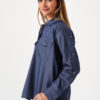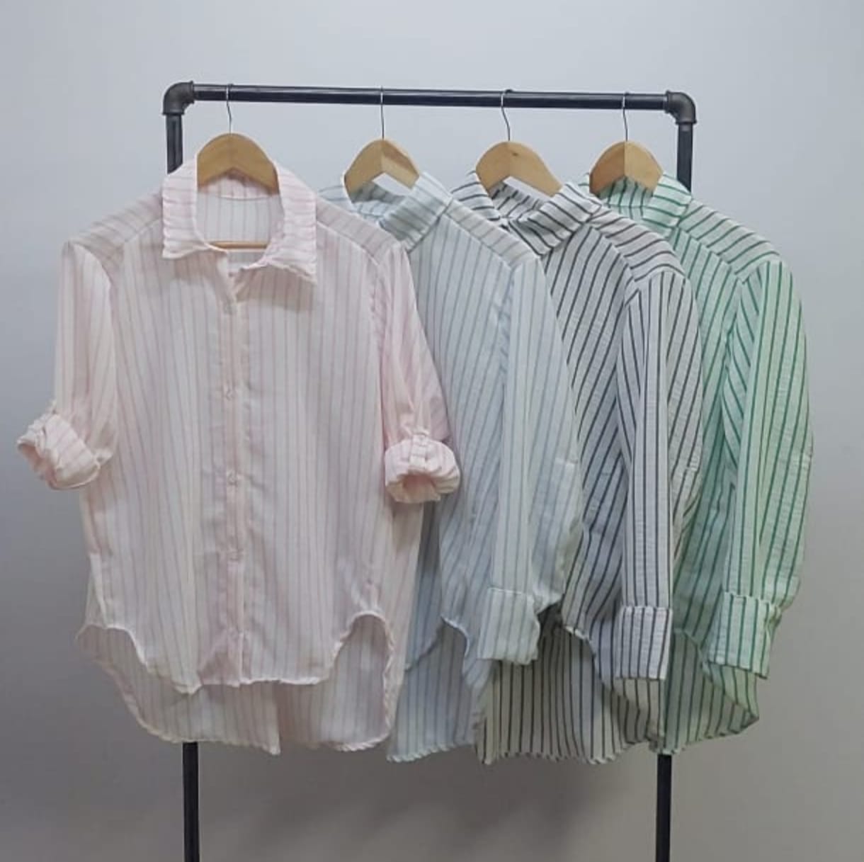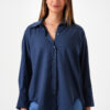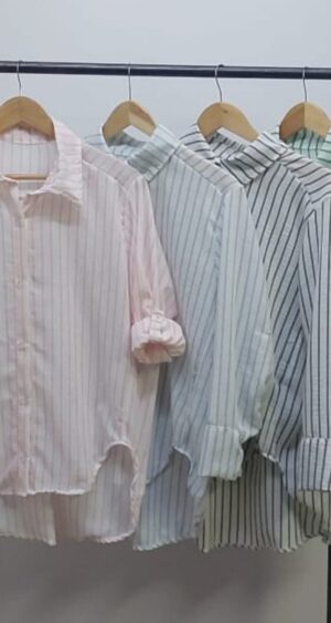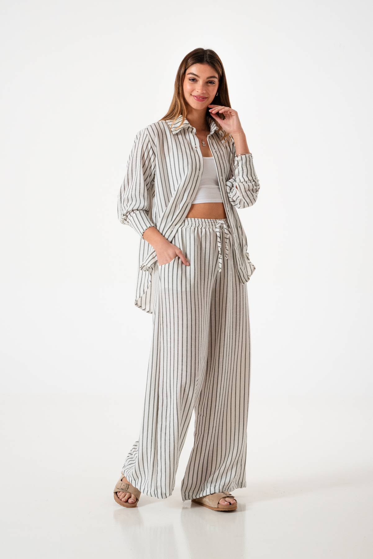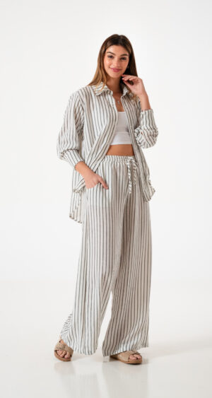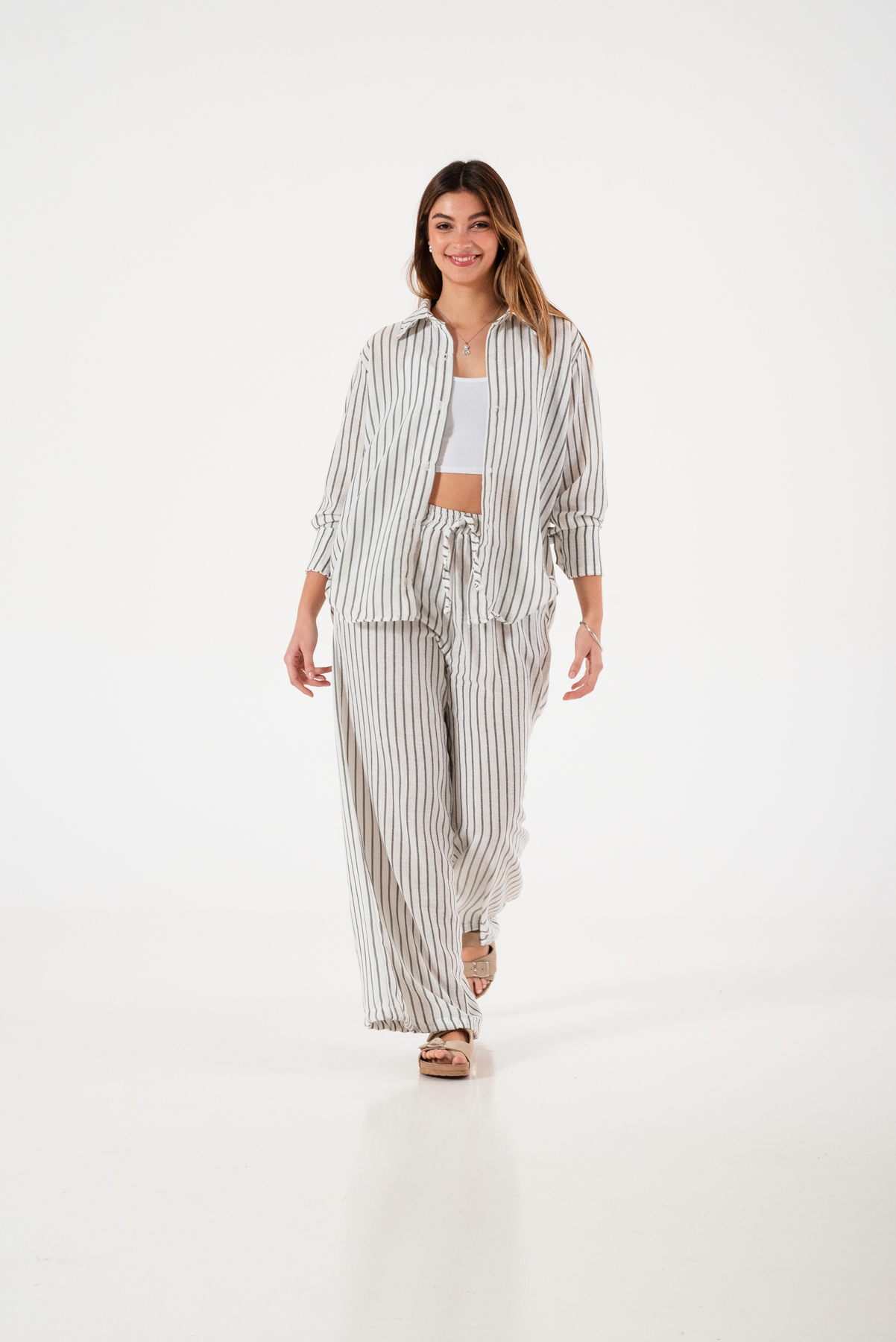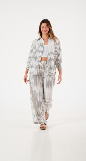 Camisa estilo over confeccionado en tela de lino rayado con detalle botones.