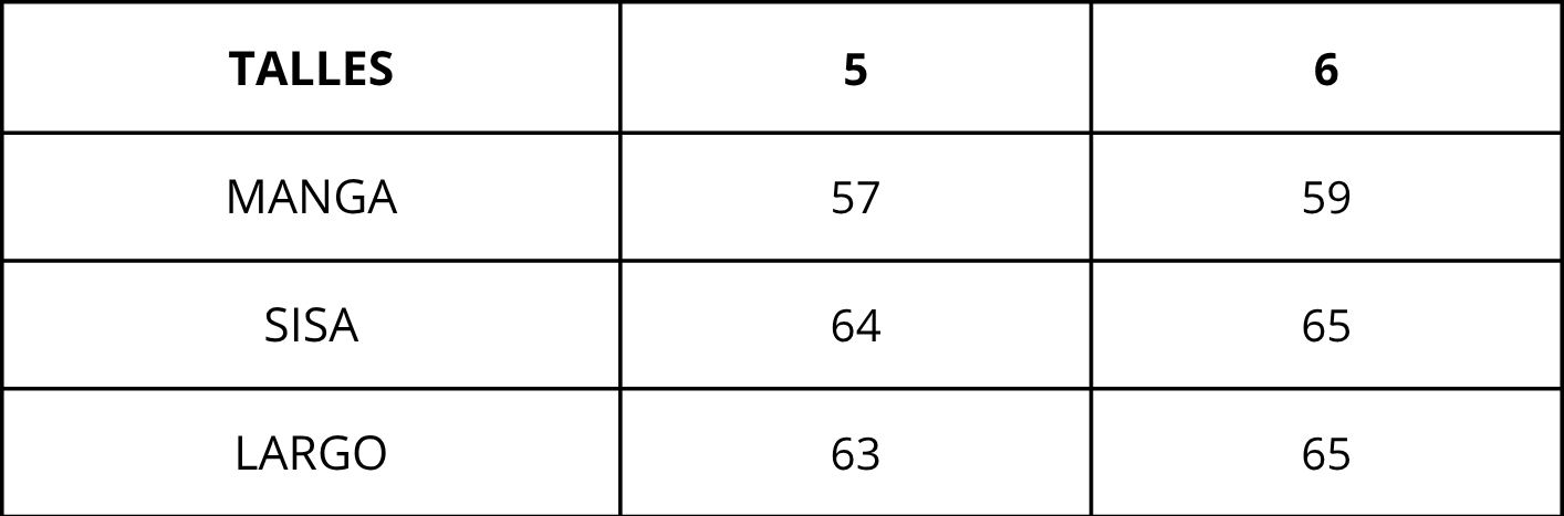 | Talles | 5, 6 |