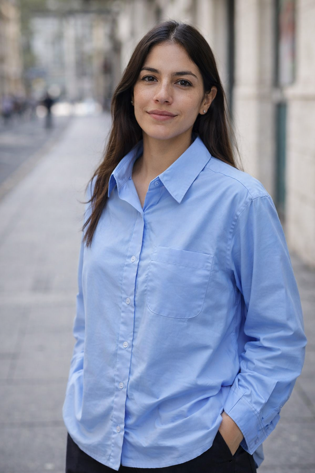 Camisa confeccionada en tela de poplin con detalle bolsillo delantero y botones