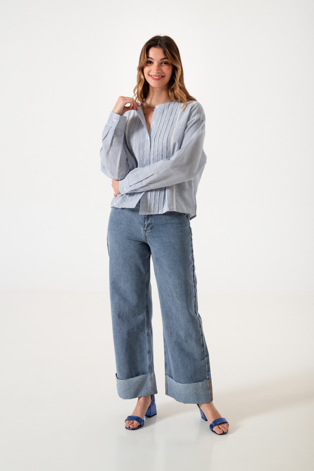 CAMISA RAYADA BORDADA – Q011