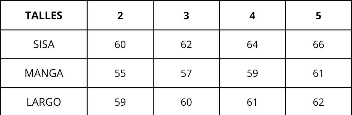 | Talles | 2, 3, 4, 5 |