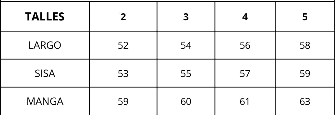 | Talles | 2, 3, 4, 5 |