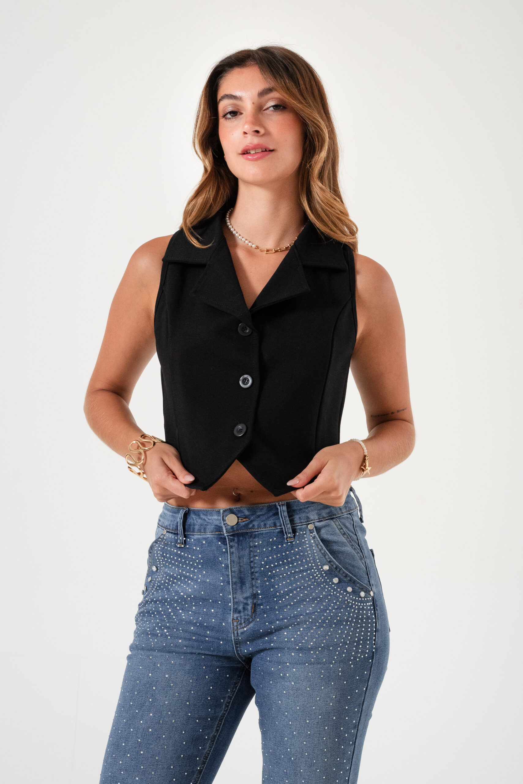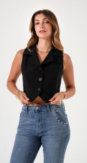 Chaleco confeccionado en tela de crep.
