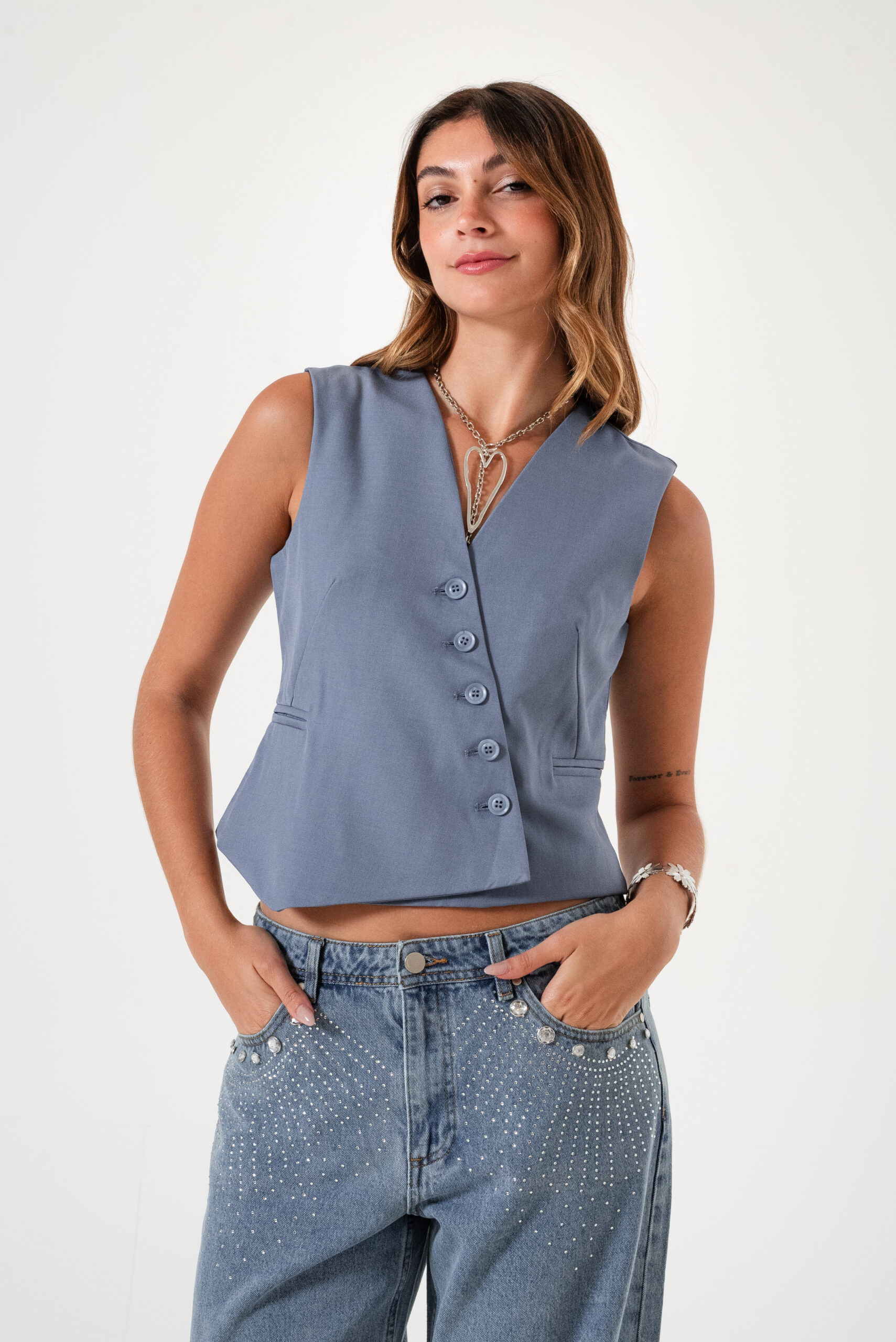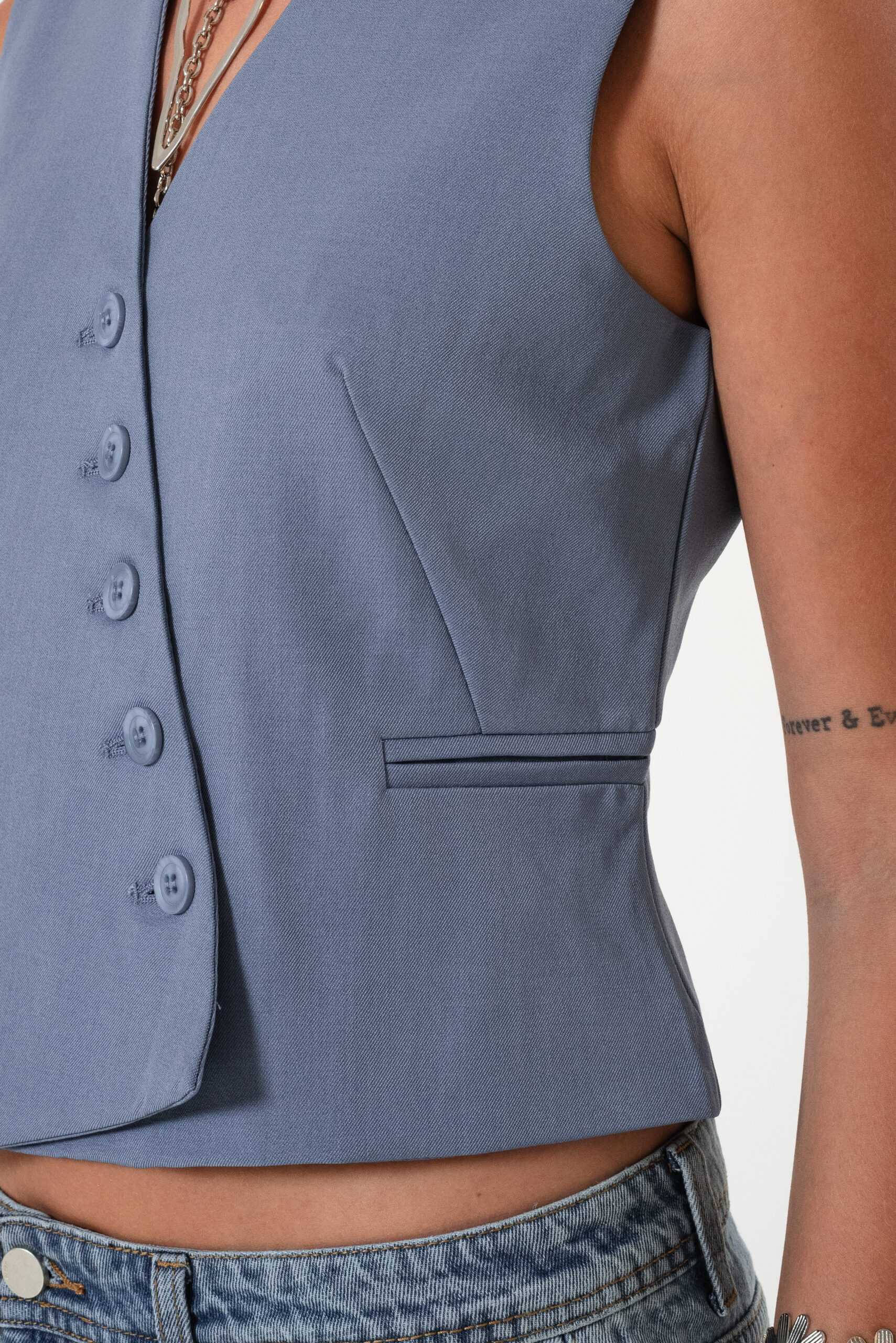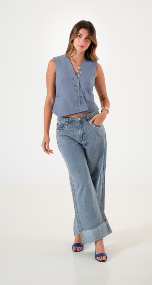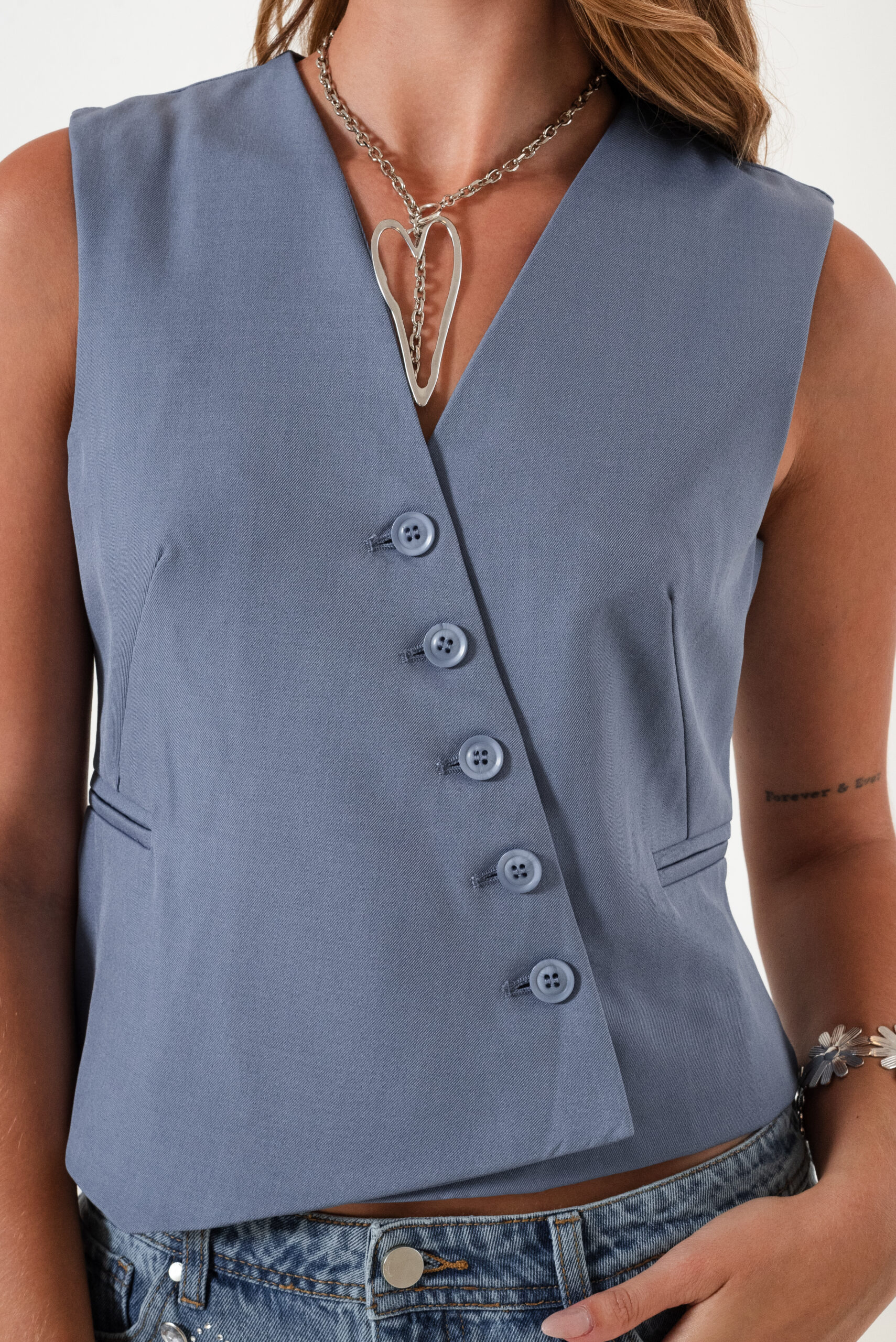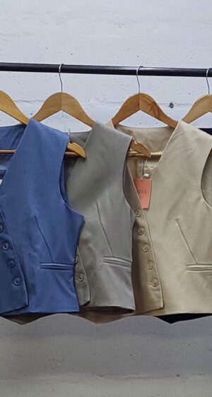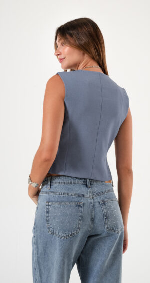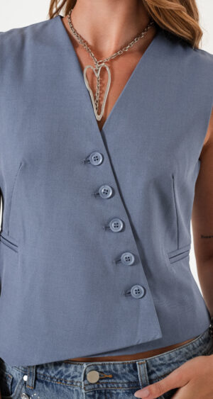 Chaleco confeccionado en tela de sastreria con detalle de botones cruzado