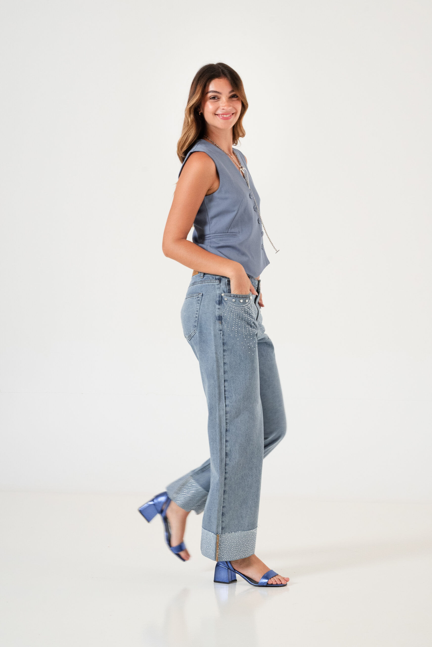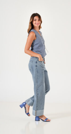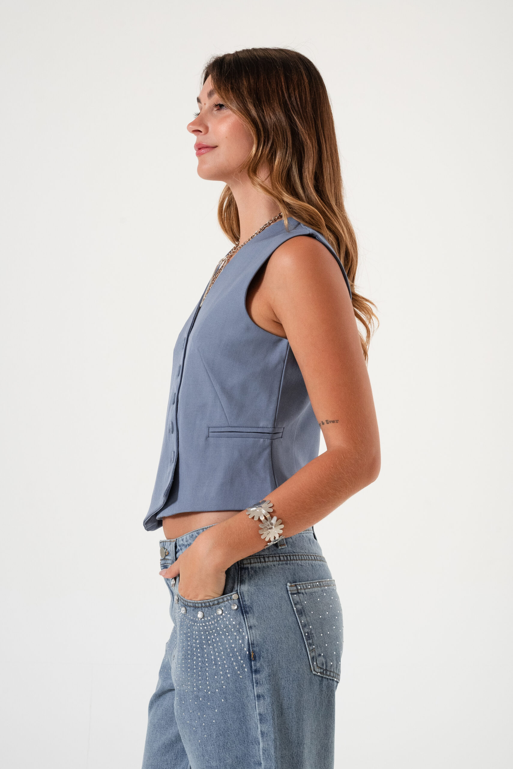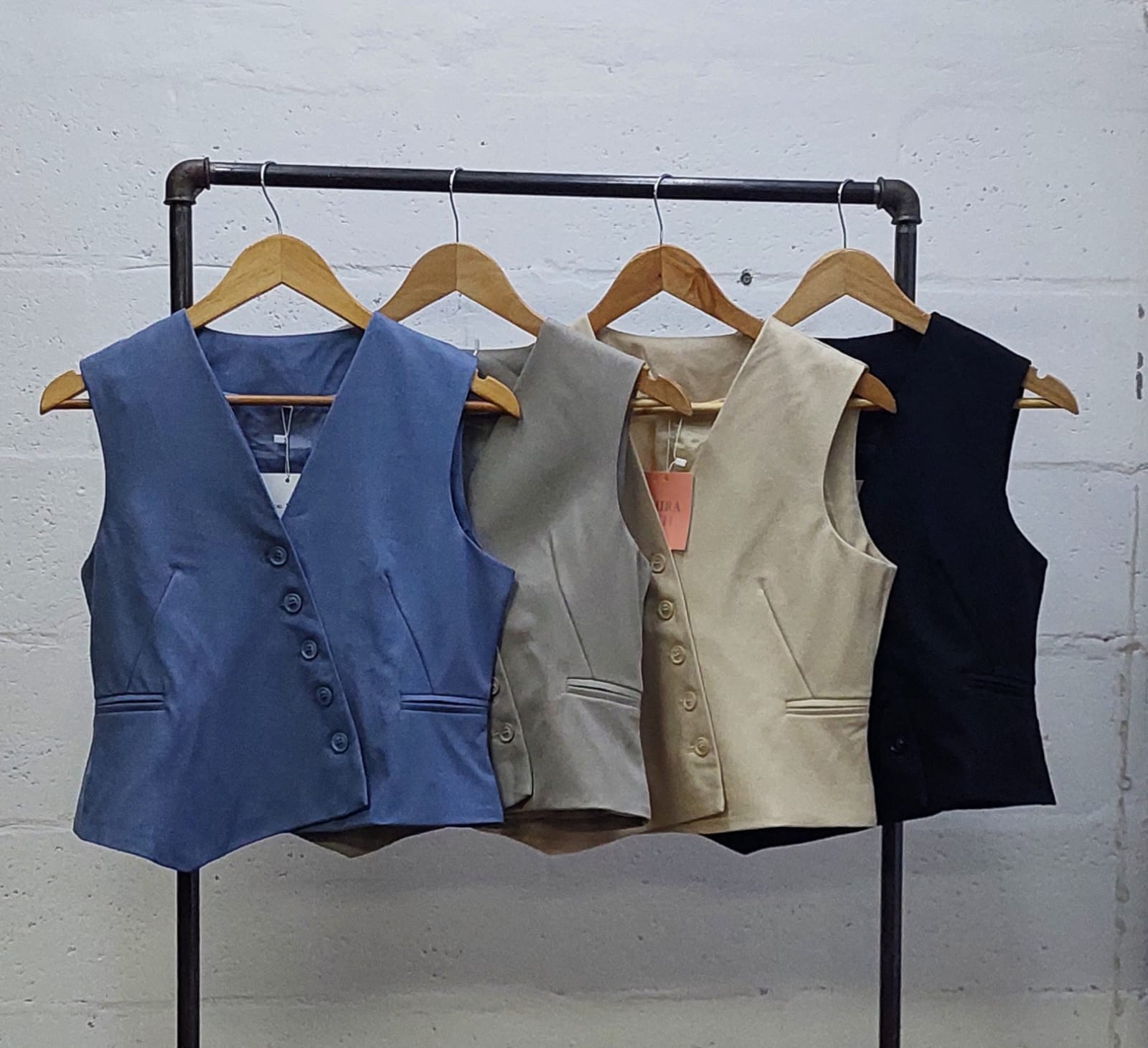 Chaleco confeccionado en tela de sastreria con detalle de botones cruzado