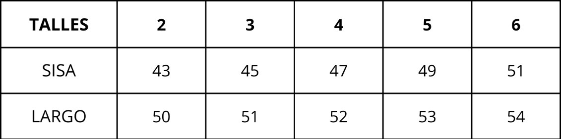 | Talles | 2, 3, 4, 5, 6 |