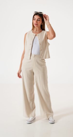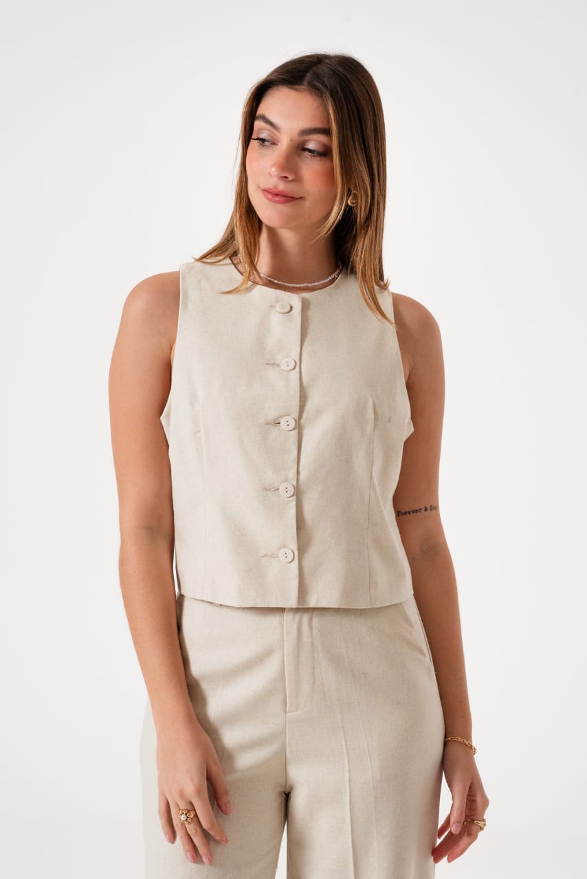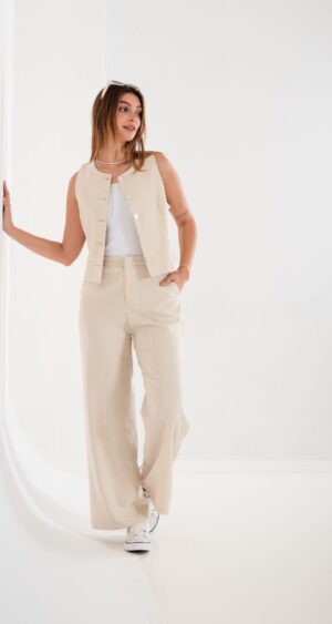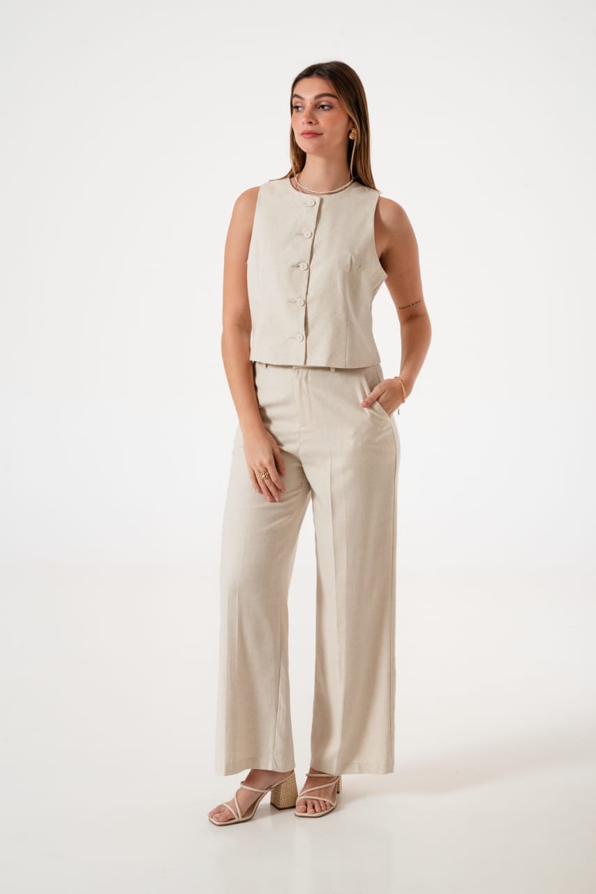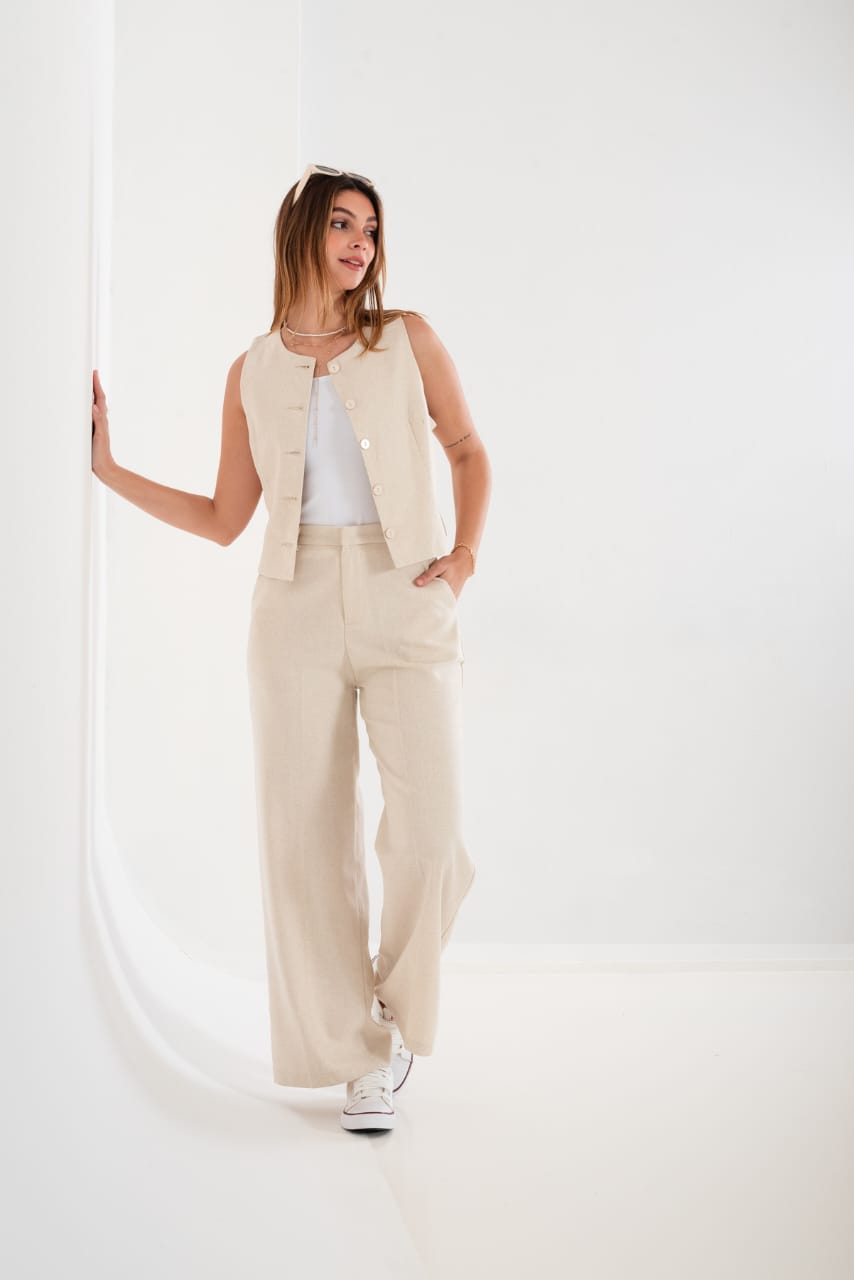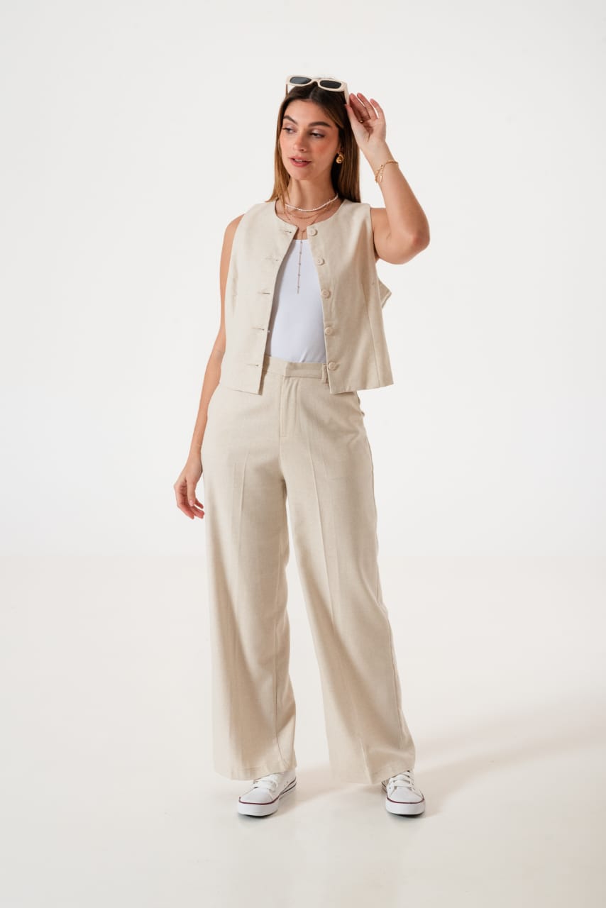 Conjunto de chaleco y palazo confeccionado en tela de sastreria