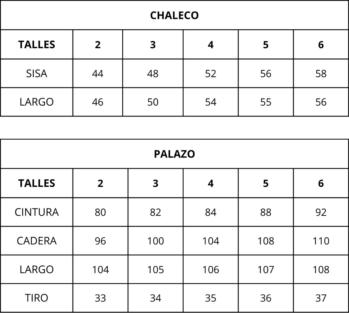 | Talles | 2, 3, 4, 5, 6 |