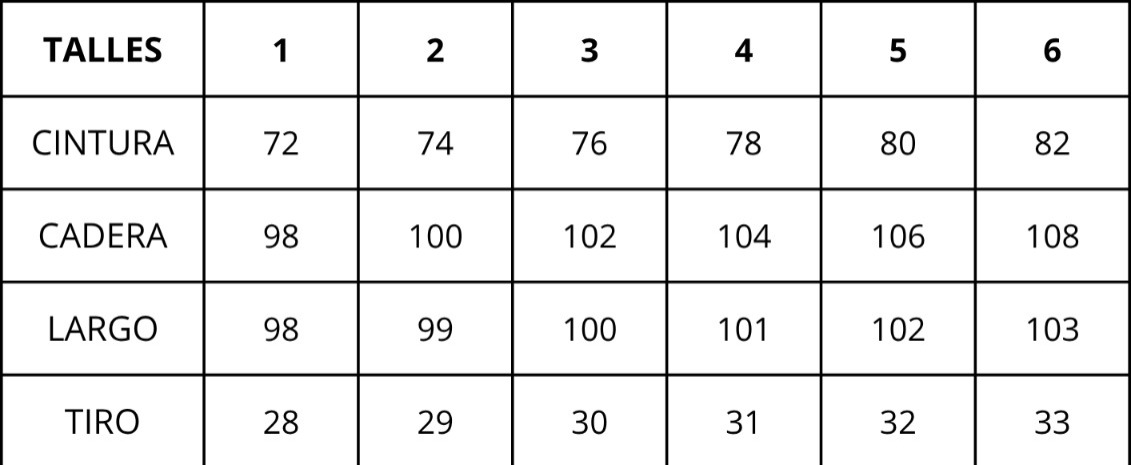 | Talles | 1, 2, 3, 4, 5, 6 |