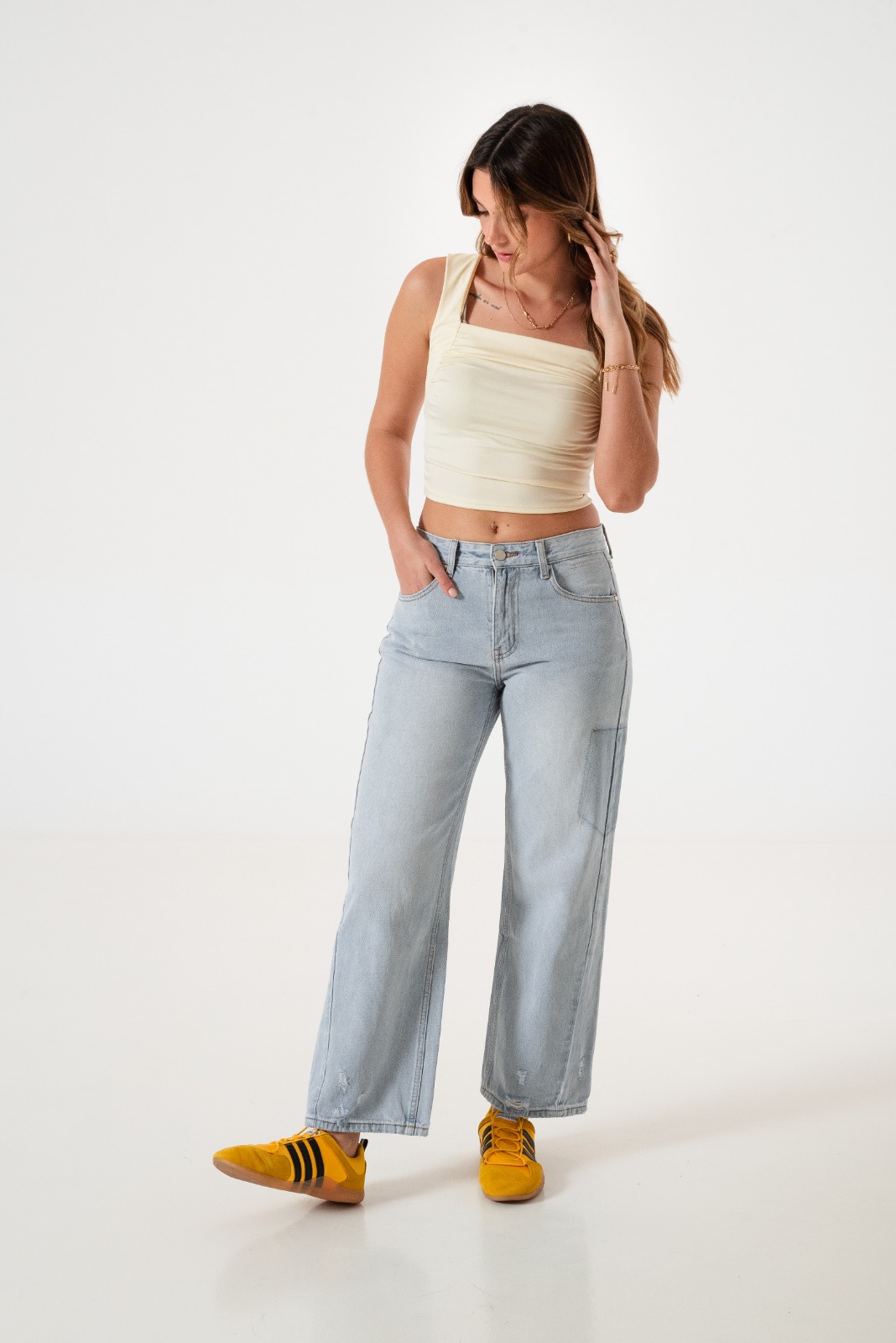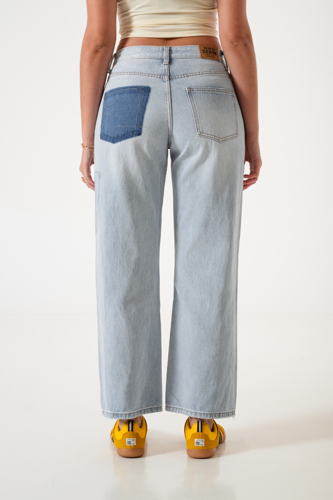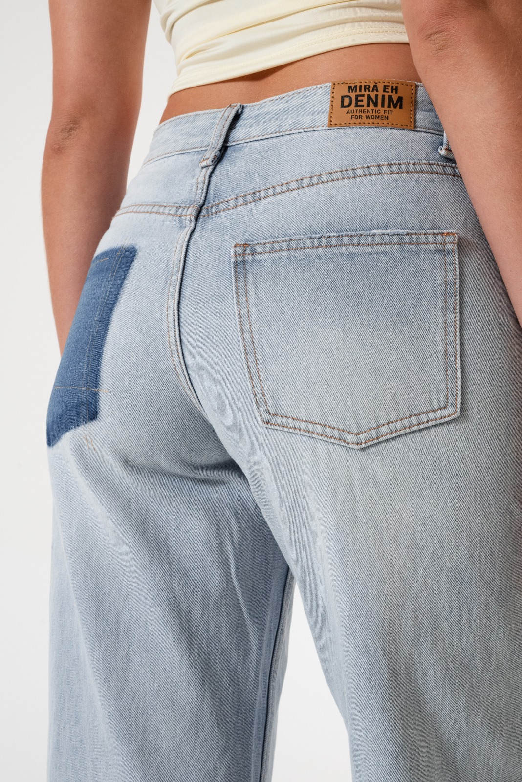 Jean estilo wid leg con detalle de bolsillos, pasacinto, cierre y boton