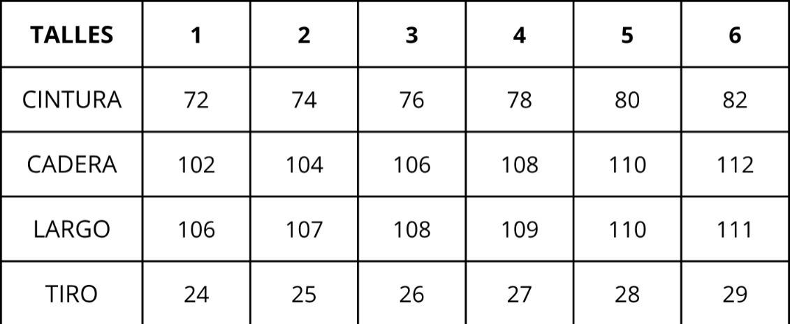 | Talles | 1, 2, 3, 4, 5, 6 |