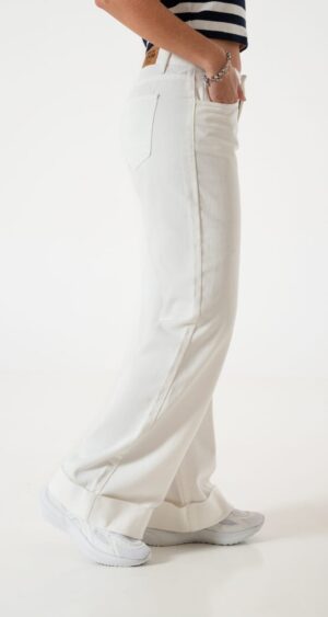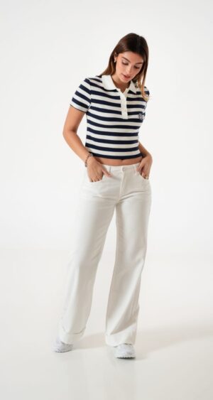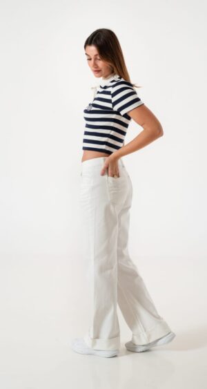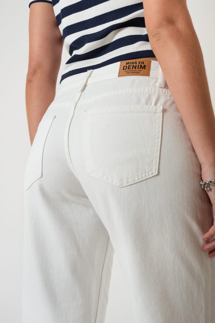 Jean estilo wid leg con detalle de botamanga, bolsillos, cierre y boton