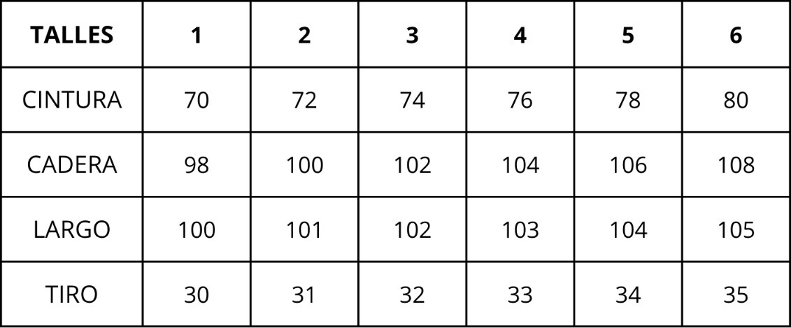 | Talles | 1, 2, 3, 4, 5, 6 |