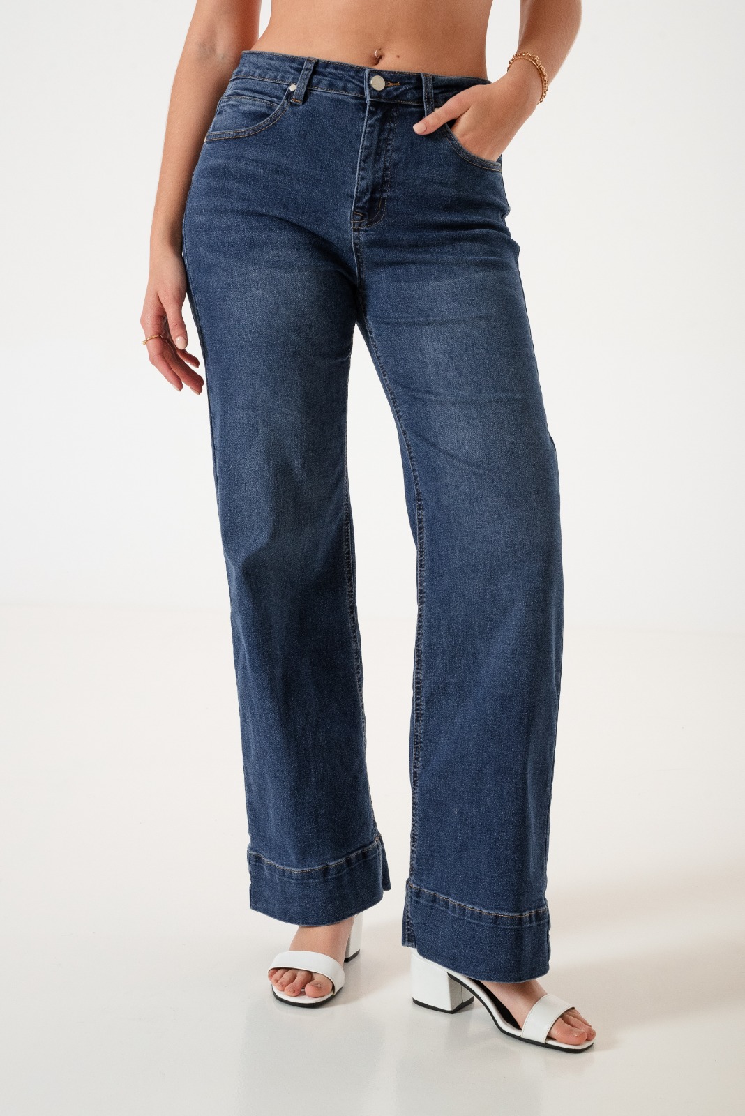 Jean estilo wid leg con detalle de botamanga marcada