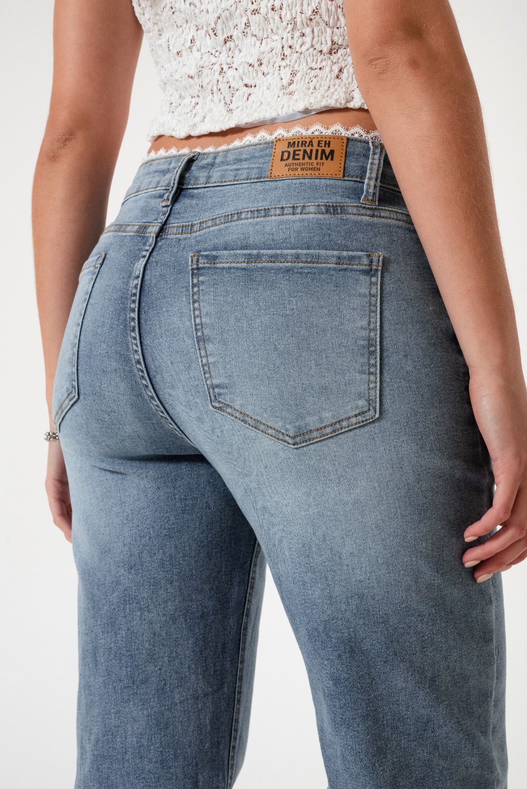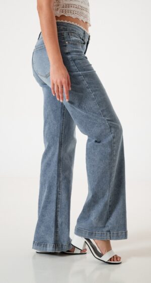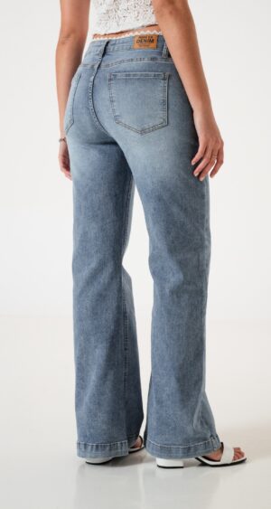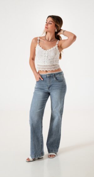 Jean estilo wid leg con detalle de encaje en la cintura