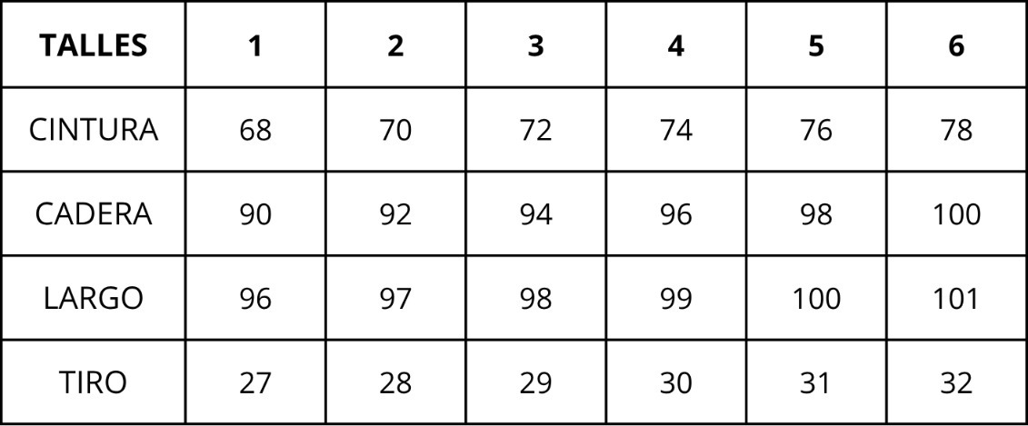 | Talles | 1, 2, 3, 4, 5, 6 |