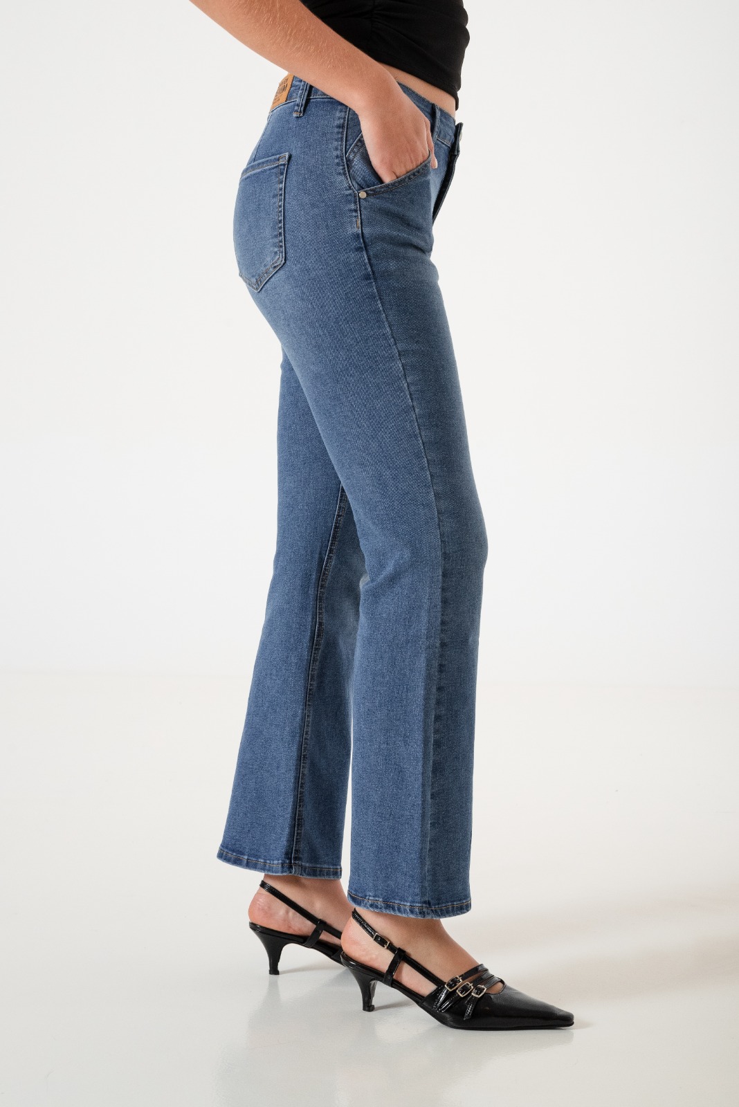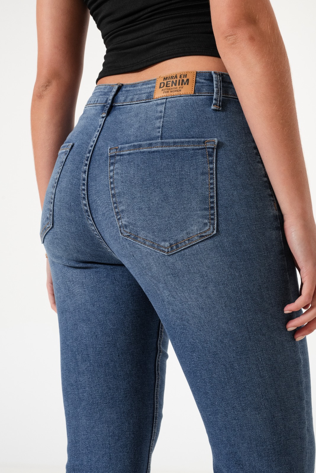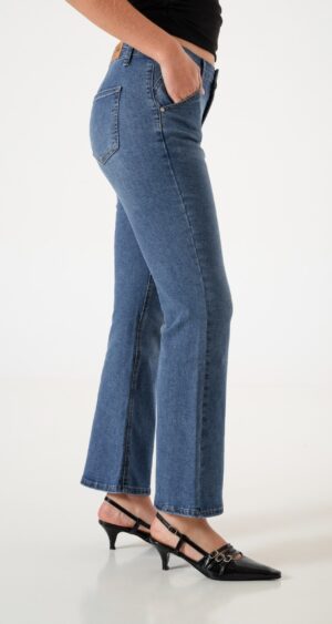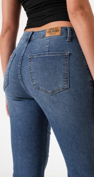 Jean estilo wid leg con detalle de bolsillos, pasacinto, cierre y boton