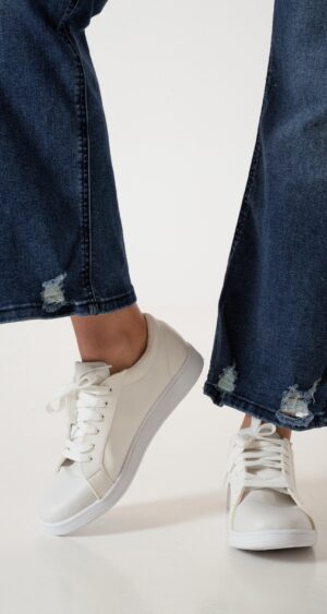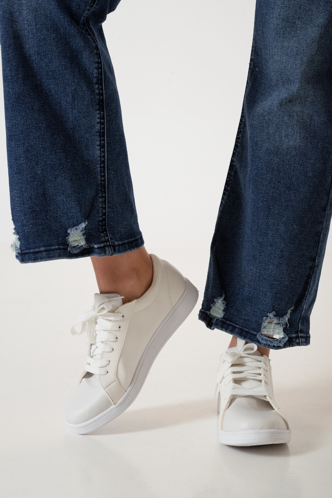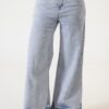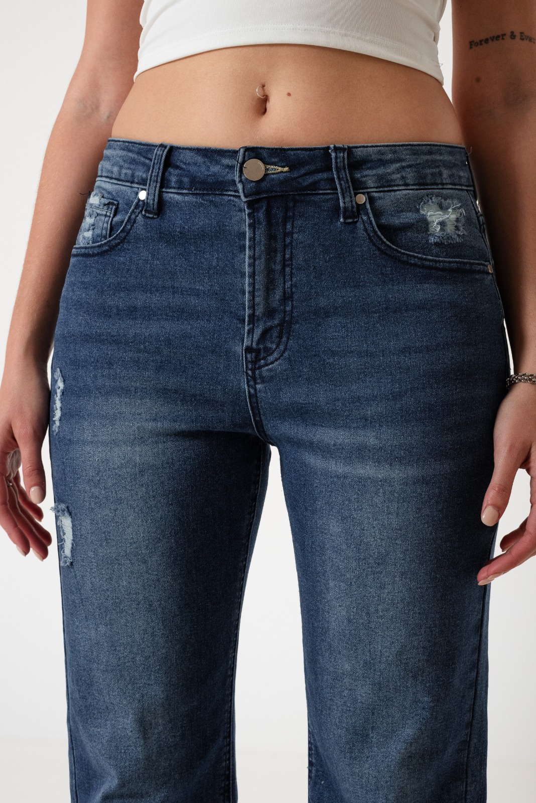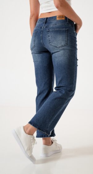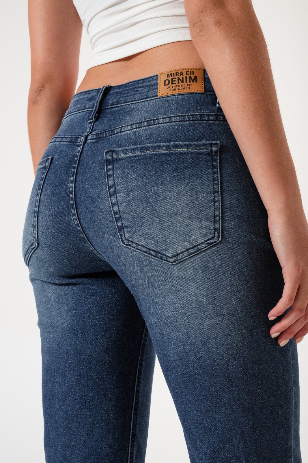 Jean estilo wid leg con detalle de roturas, bolsillos, pasacinto, cierre y boton