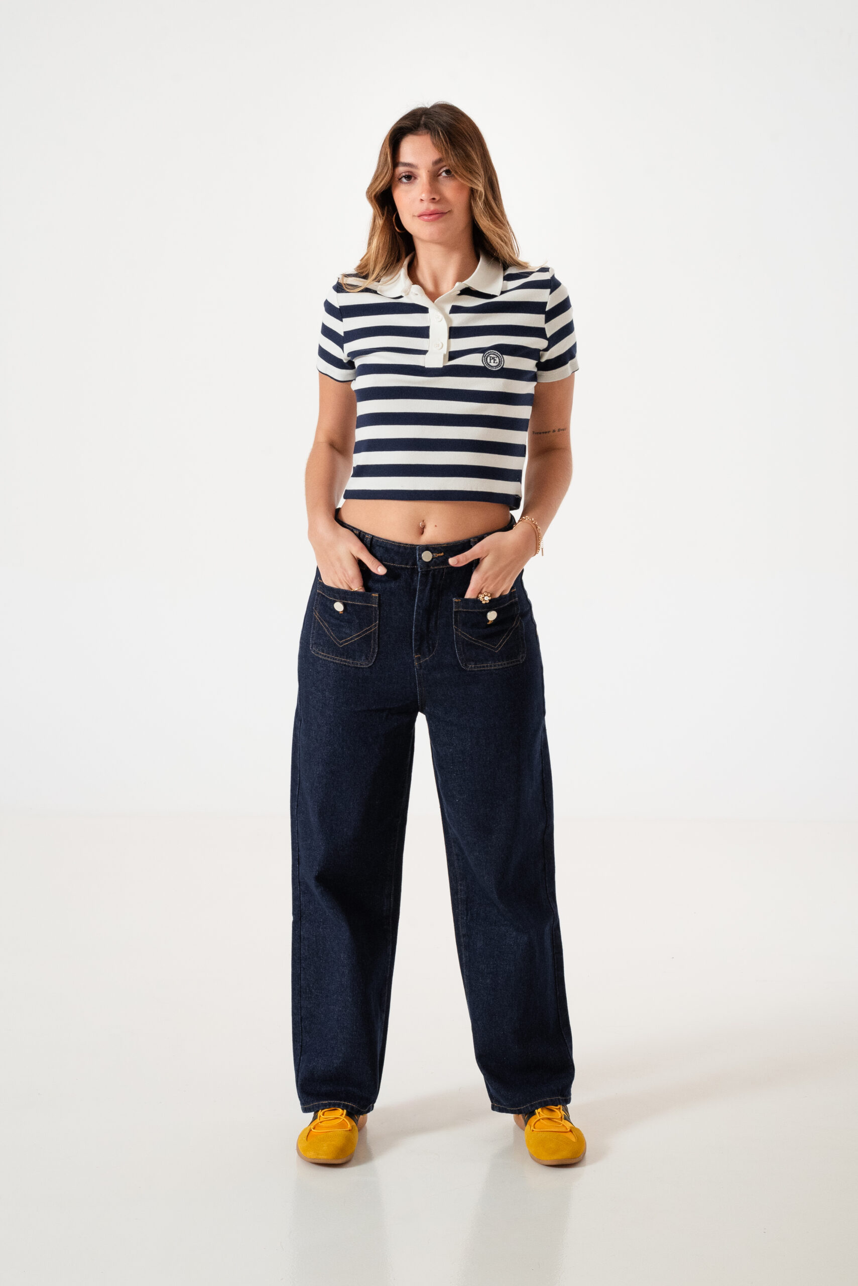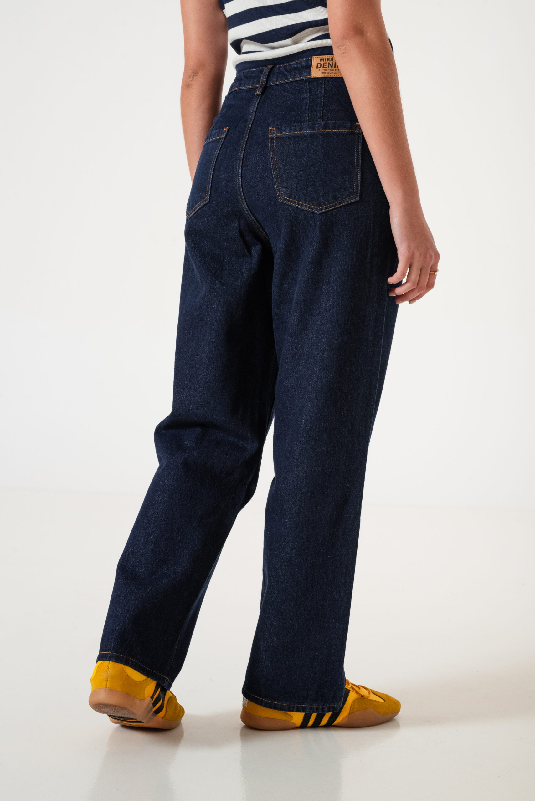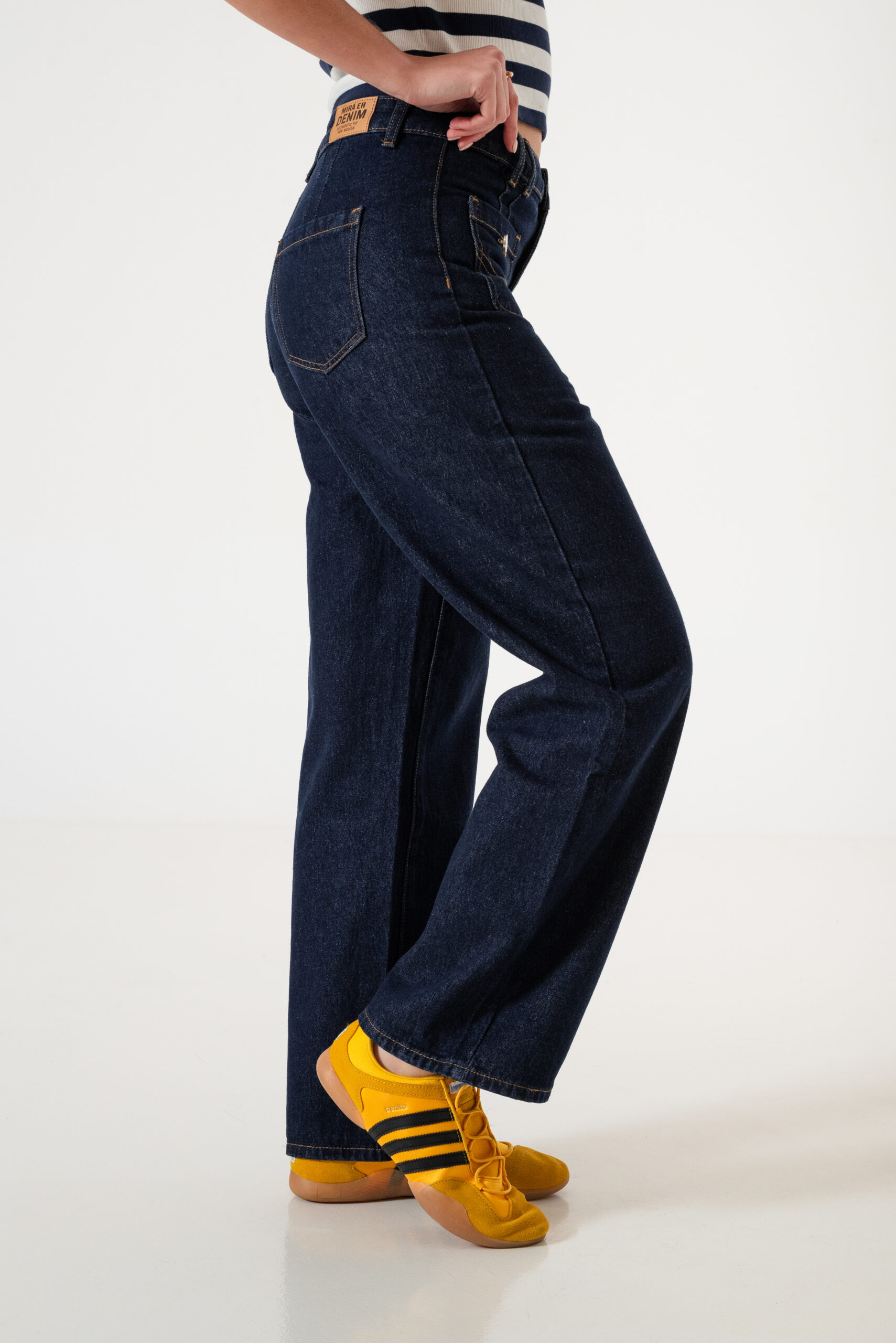 Jean estilo wid leg con detalle de bolsillos frontales, pasacinto, cierre y boton