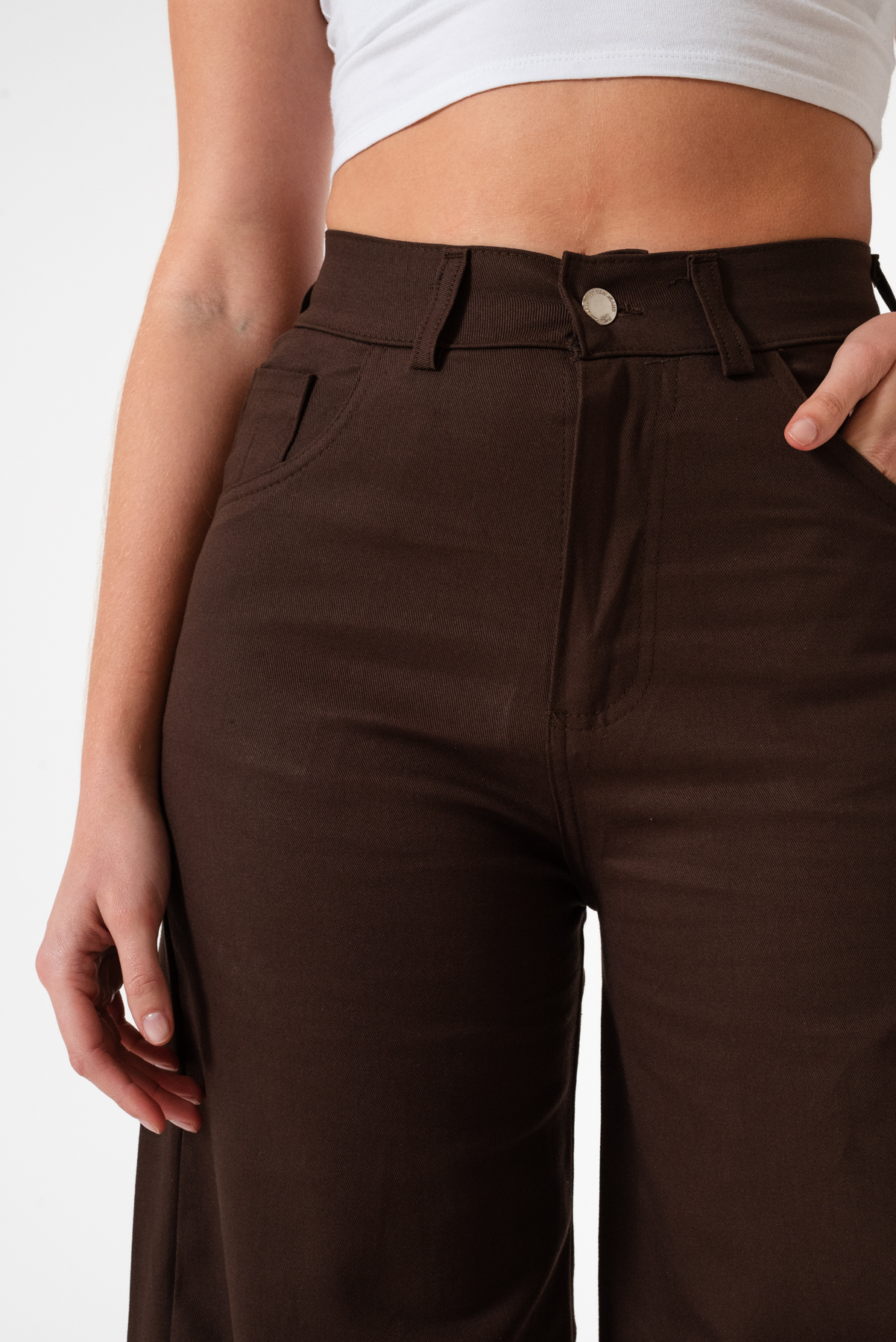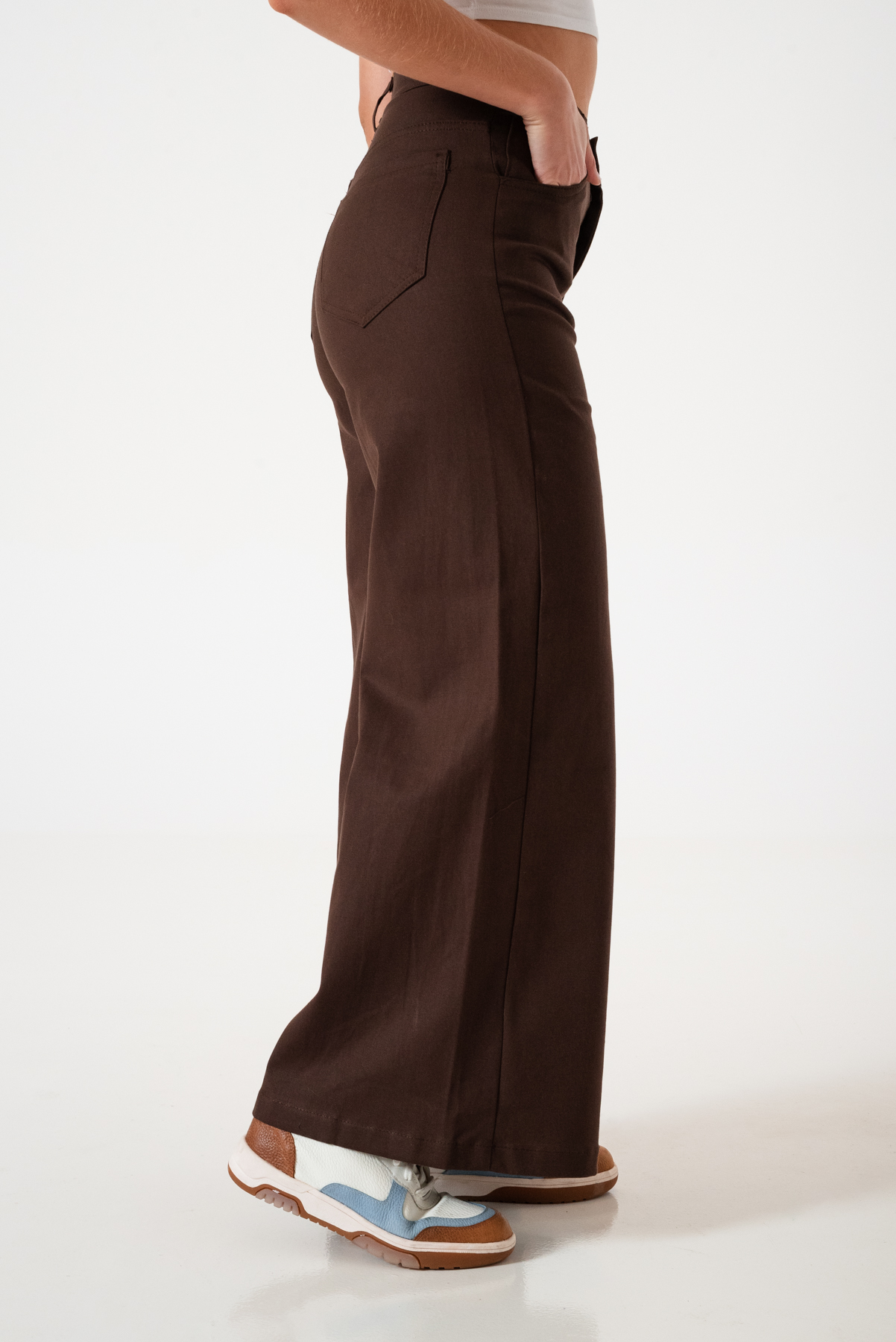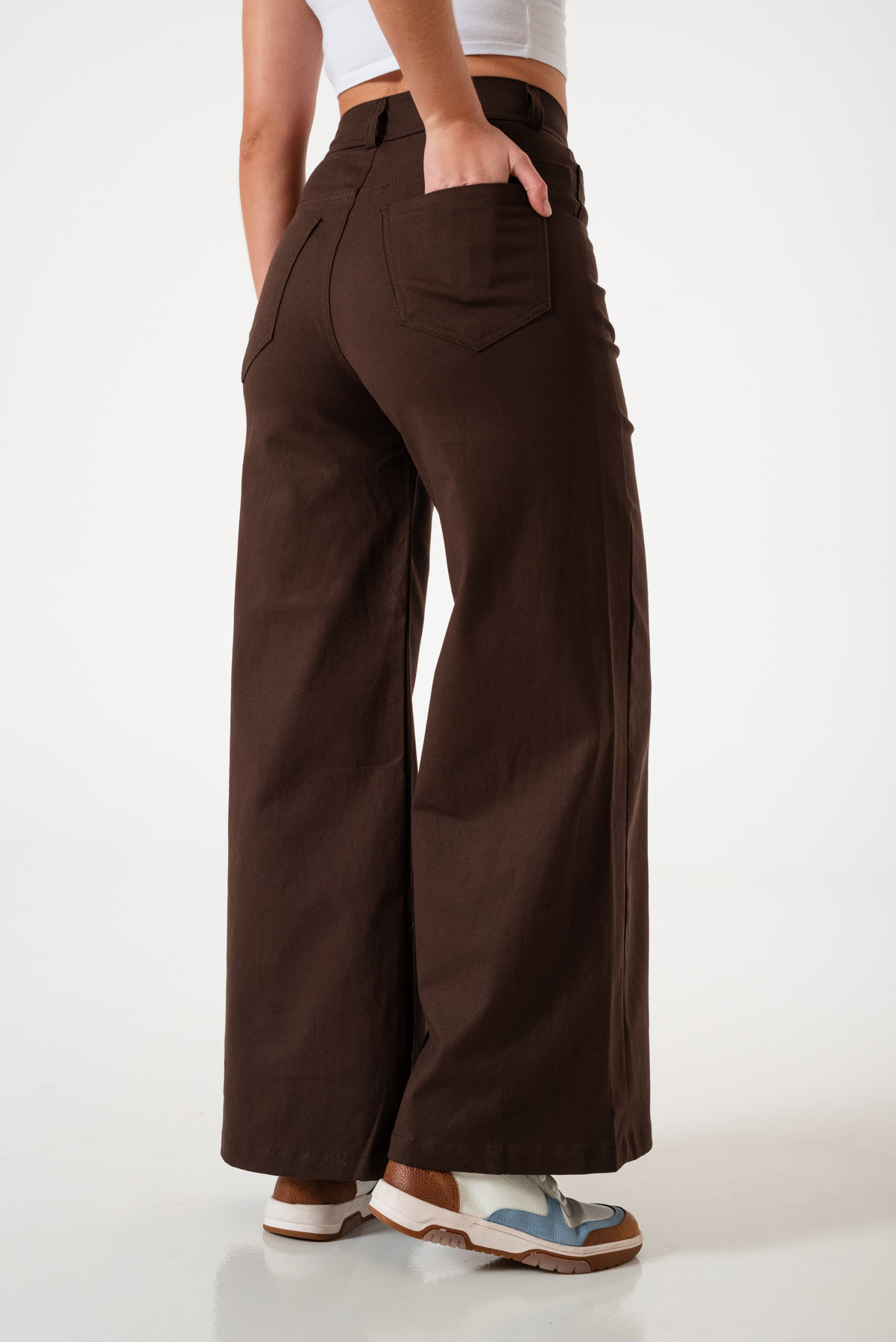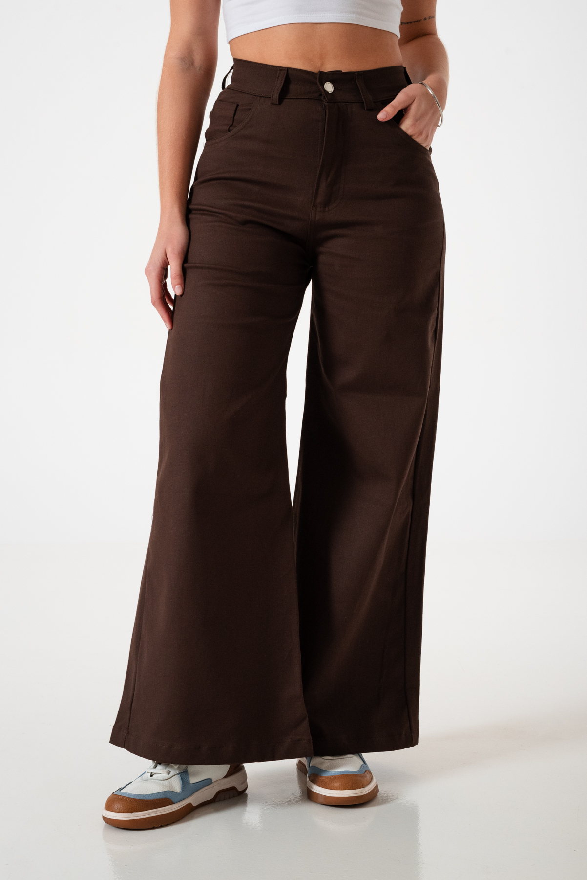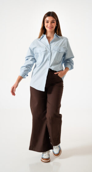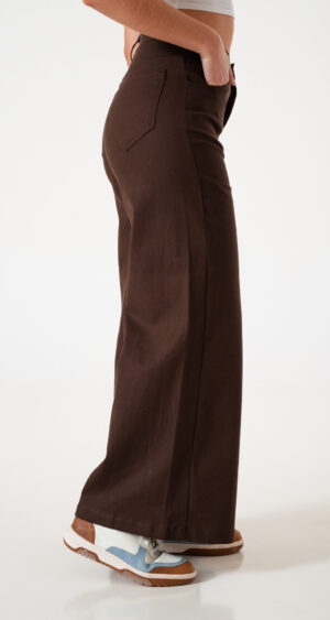Pantalon estilo maxi erika confeccionado en tela de gabardina con detalle de pasacinto, bolsillos, cierre y boton.