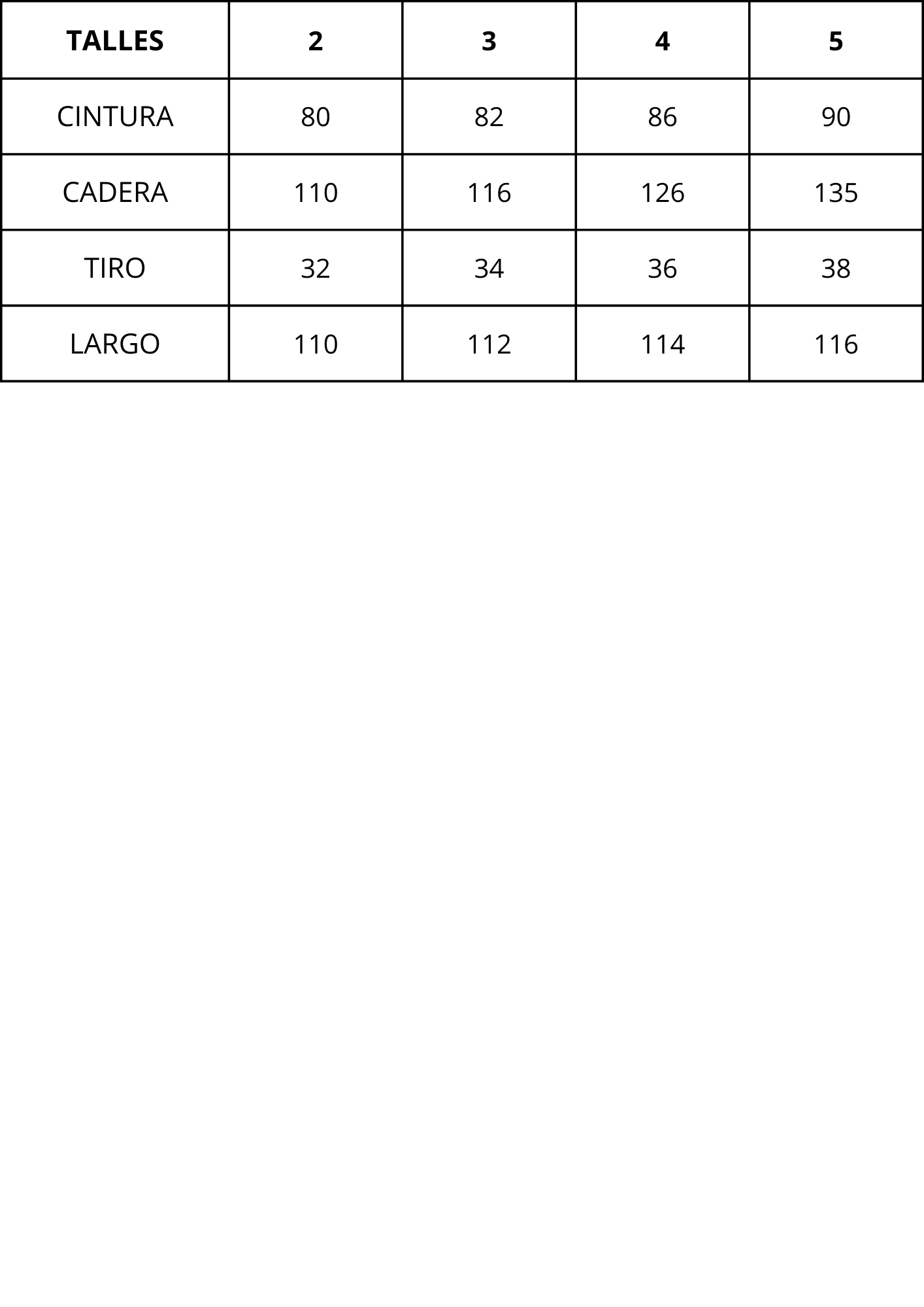 | Talles | 2, 3, 4, 5 |