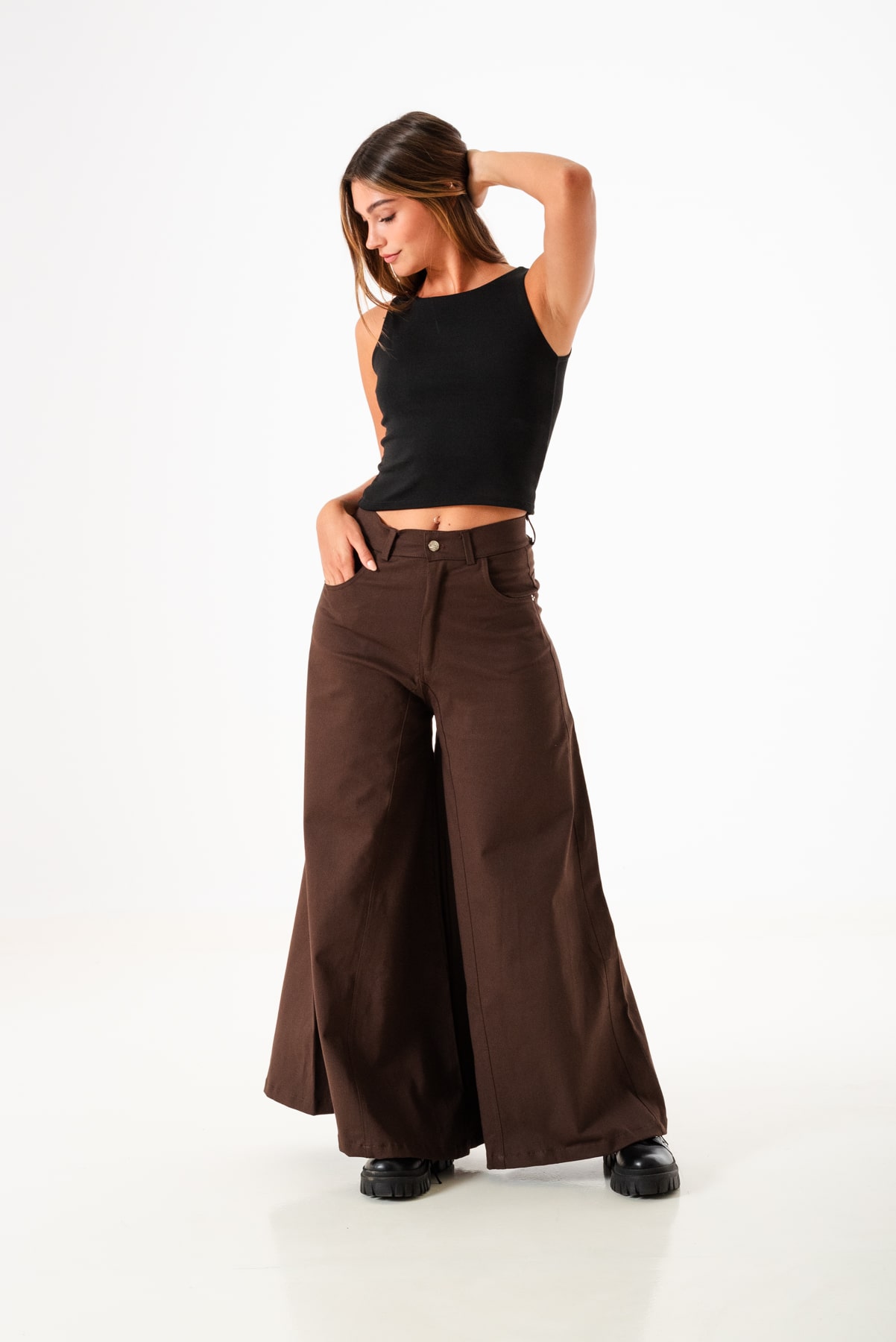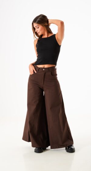 Pantalon estilo maxi palazo xxl confeccionado de argentina con detalle de bolsillos, pasacinto, cierre y boton.
