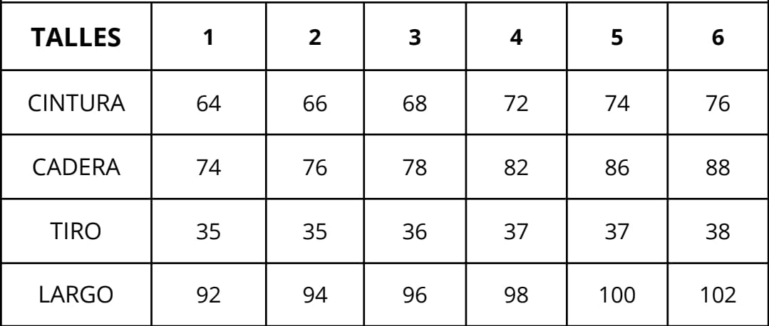 | Talles | 1, 2, 3, 4, 5, 6 |