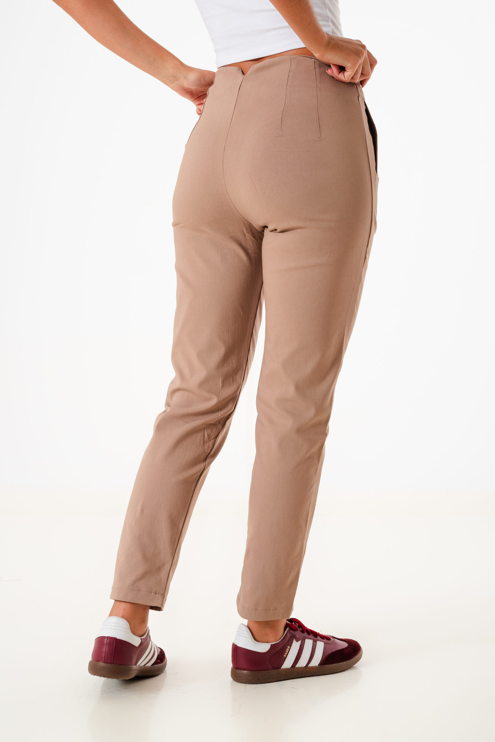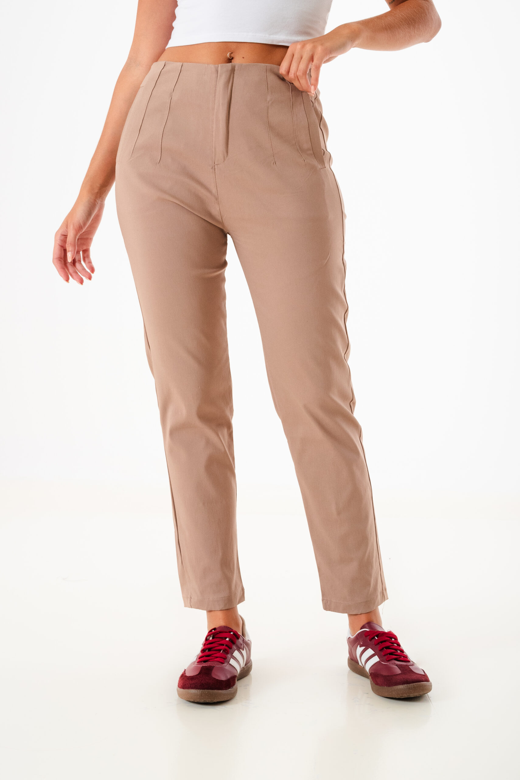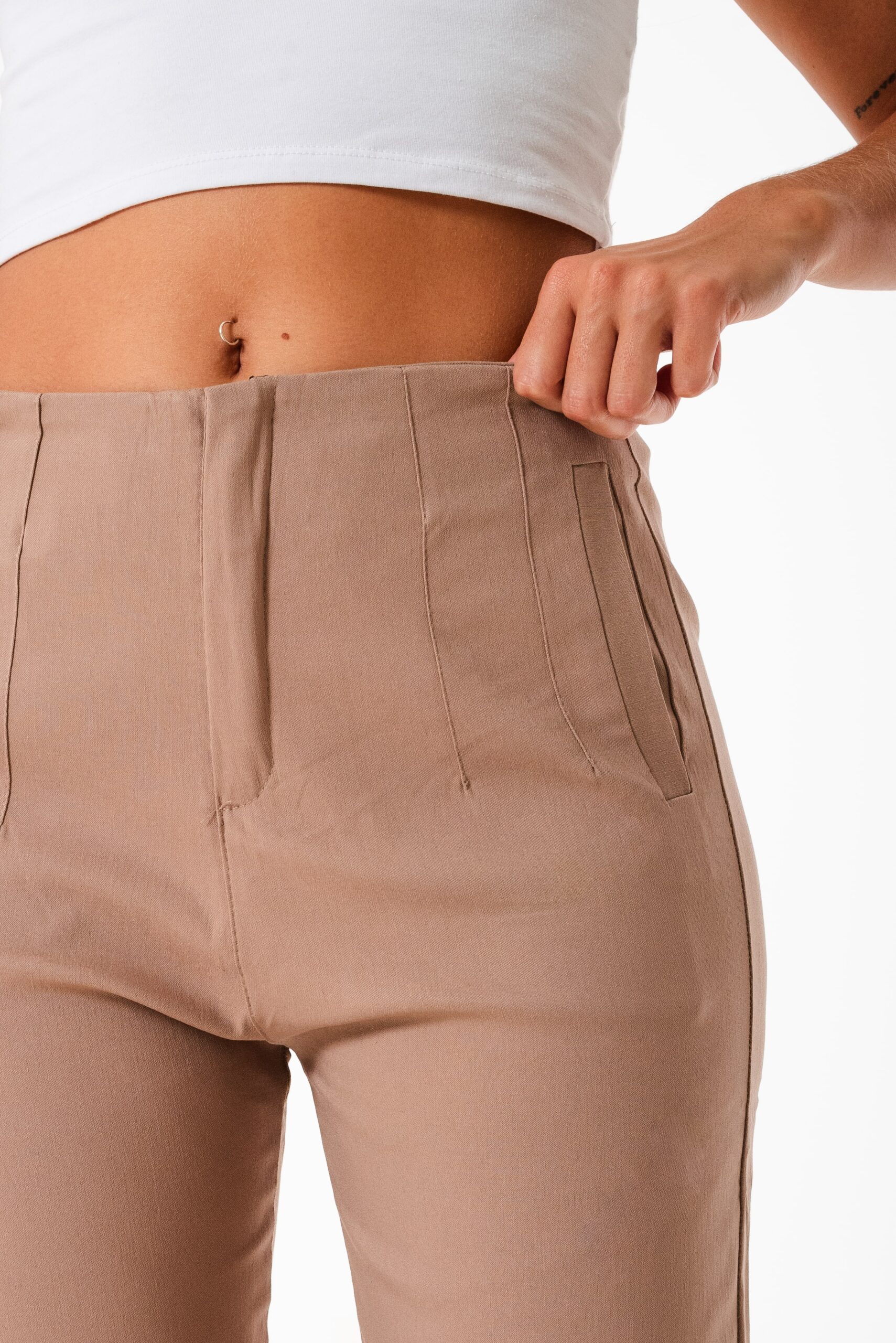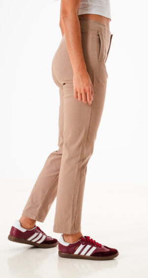 Pantalon estilo mom confeccionado en tela de bengalina con detalle de bolsillos escondido