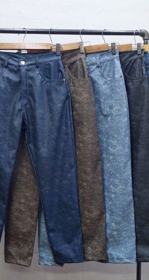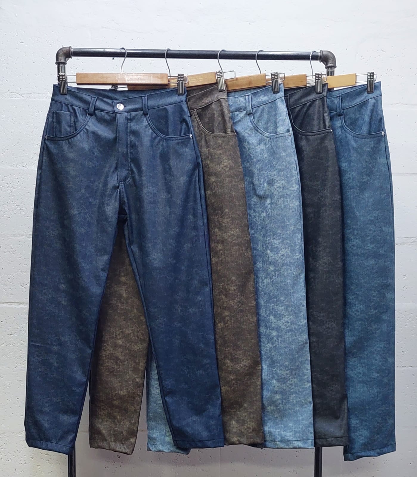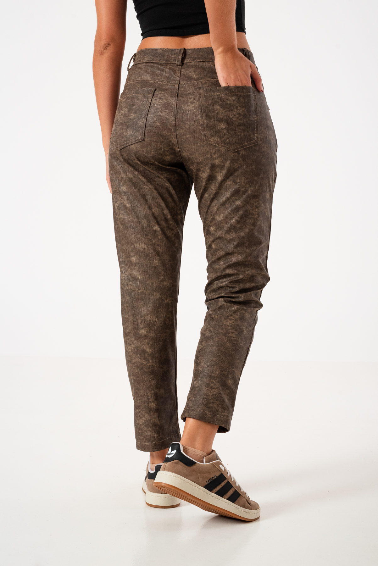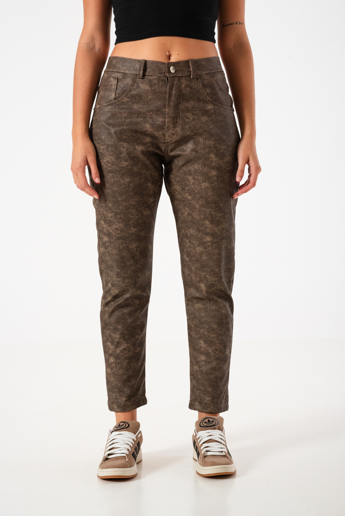 Pantalon estilo mom confeccionado en tela de engomado jean