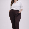 Pantalon estilo mom confeccionado en tela de gabardina con detalle de bolsillos, pasacinto, cierre y boton.