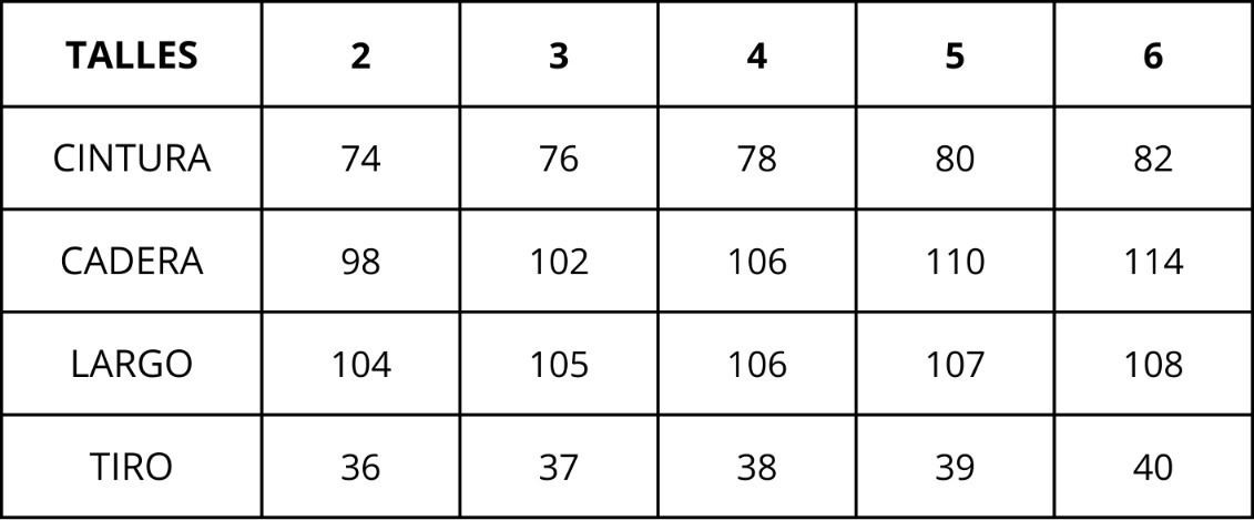 | Talles | 2, 3, 4, 5, 6 |