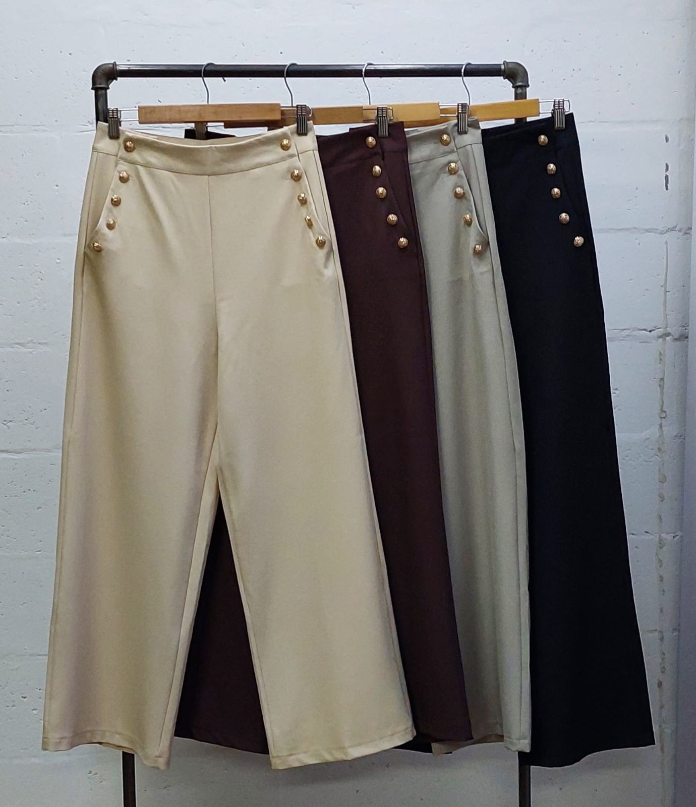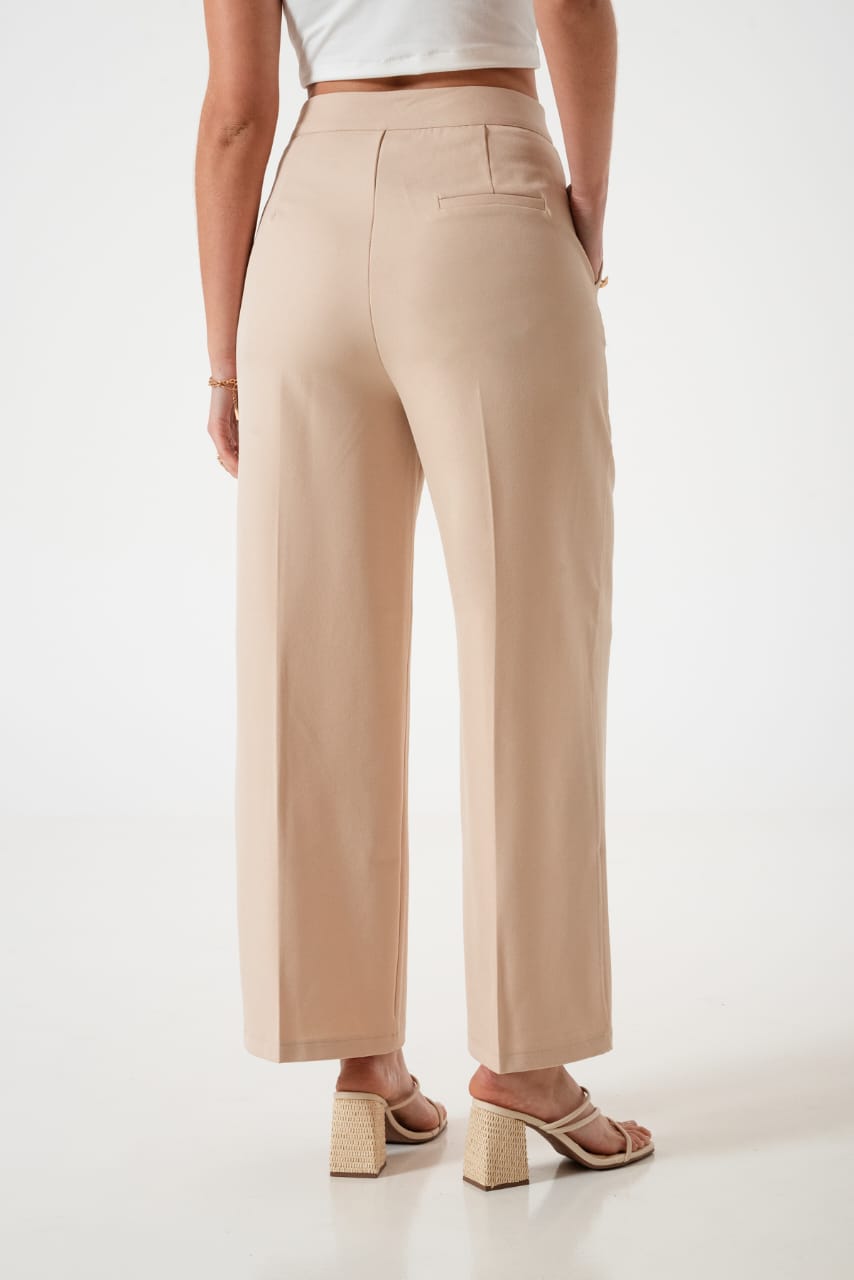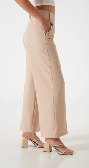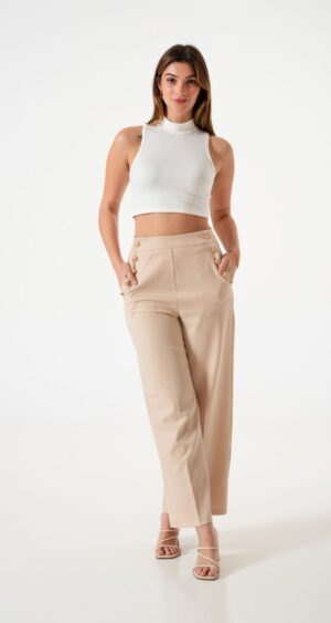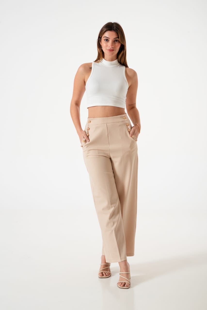 Pantalon estilo palazo confeccionado en tela de sastreria con bolsillos y botones