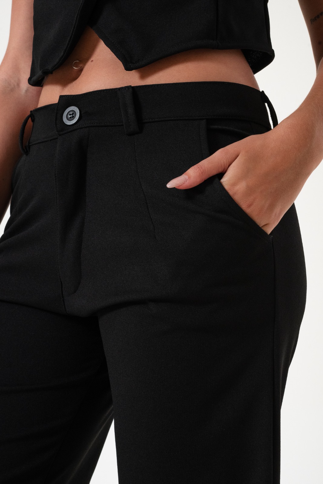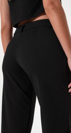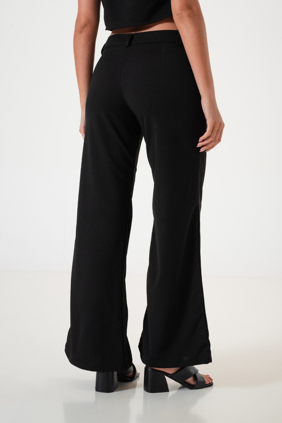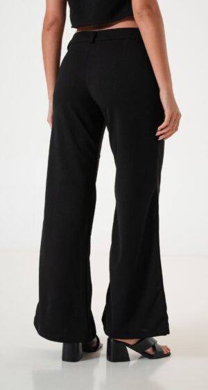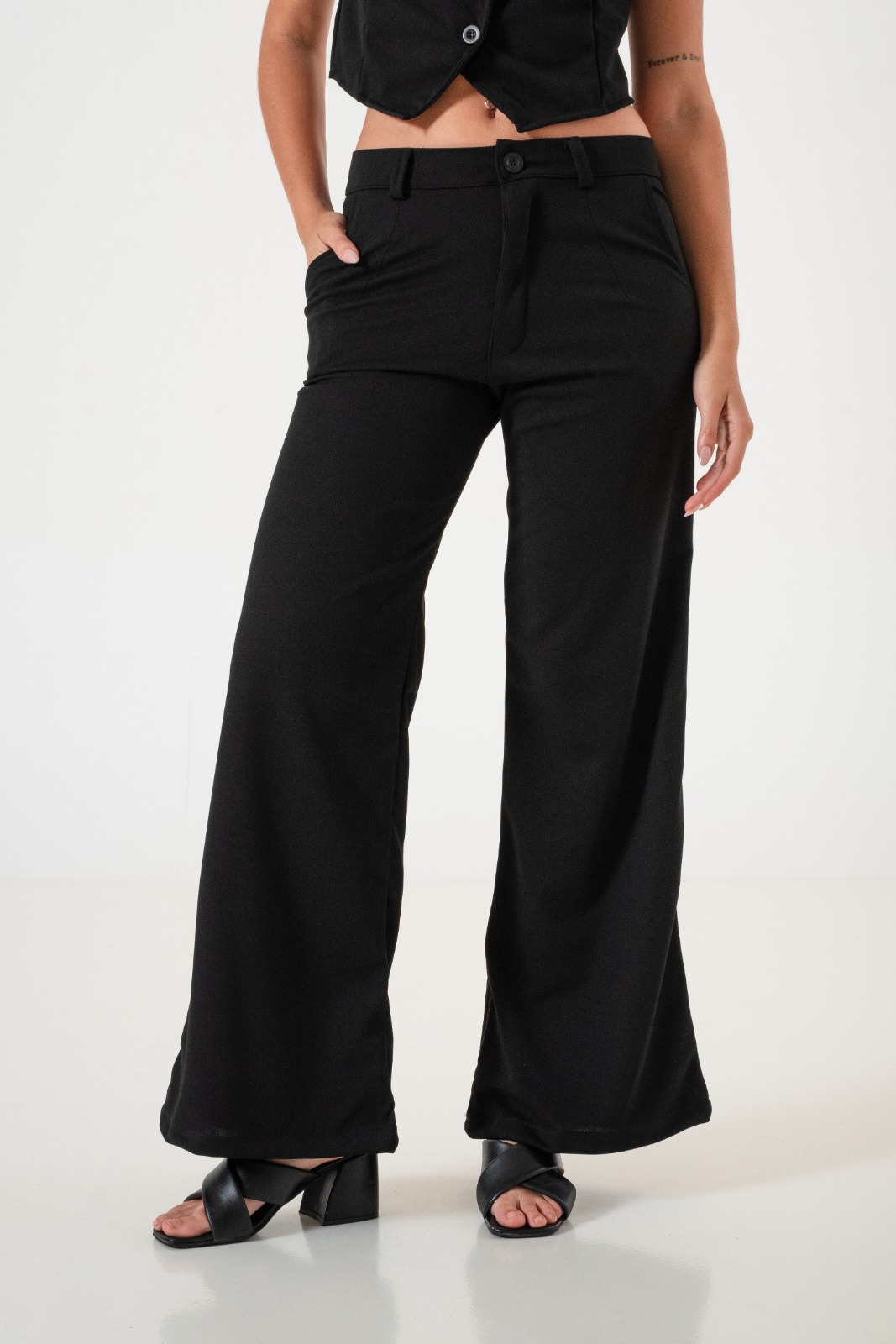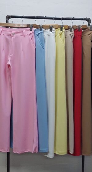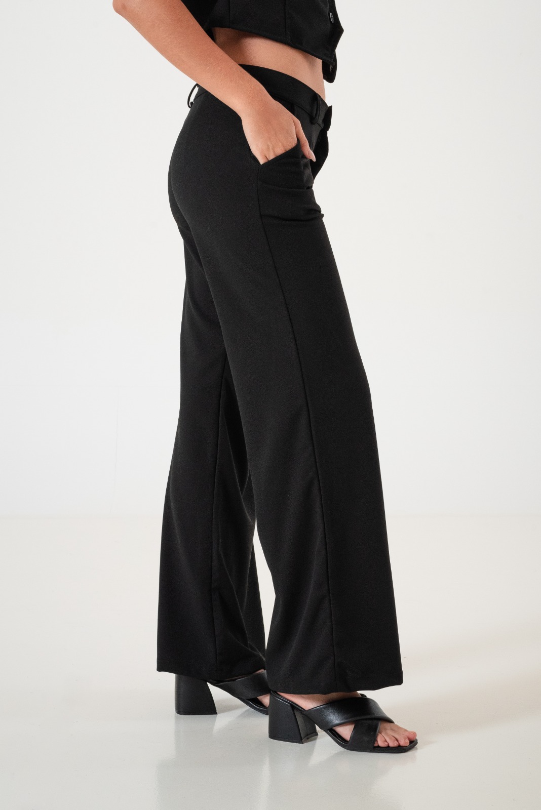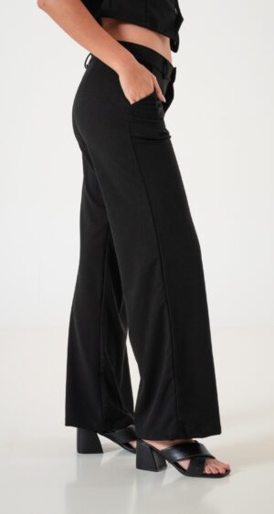 Pantalon estilo palazo confeccionado en tela de crep con detalle de bolsillos, pasacinto, cierre y boton.
