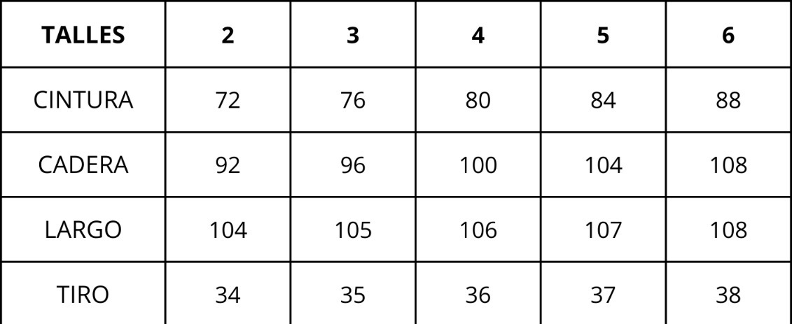 | Talles | 2, 3, 4, 5, 6 |