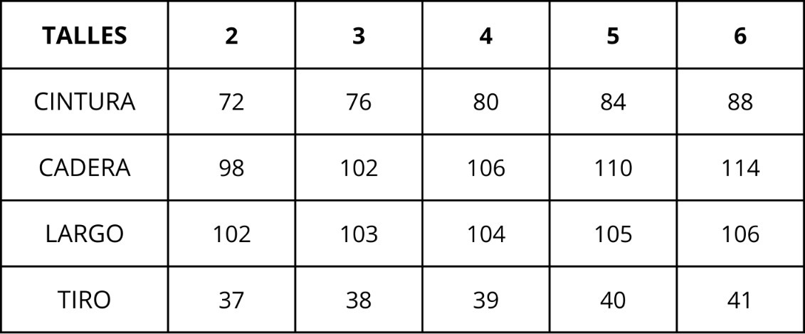 | Talles | 2, 3, 4, 5, 6 |
