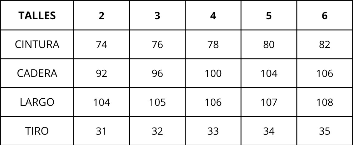 | Talles | 2, 3, 4, 5, 6 |