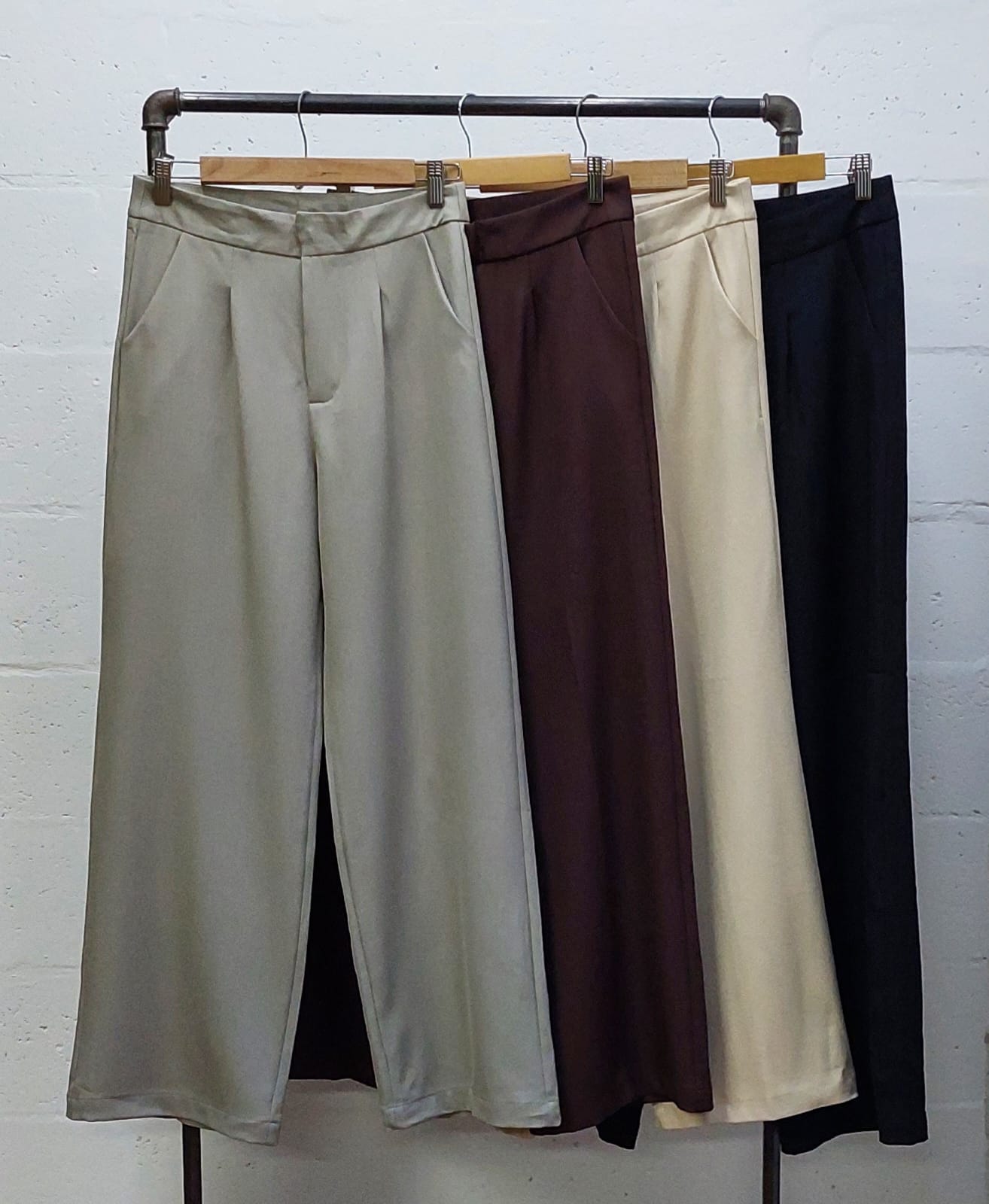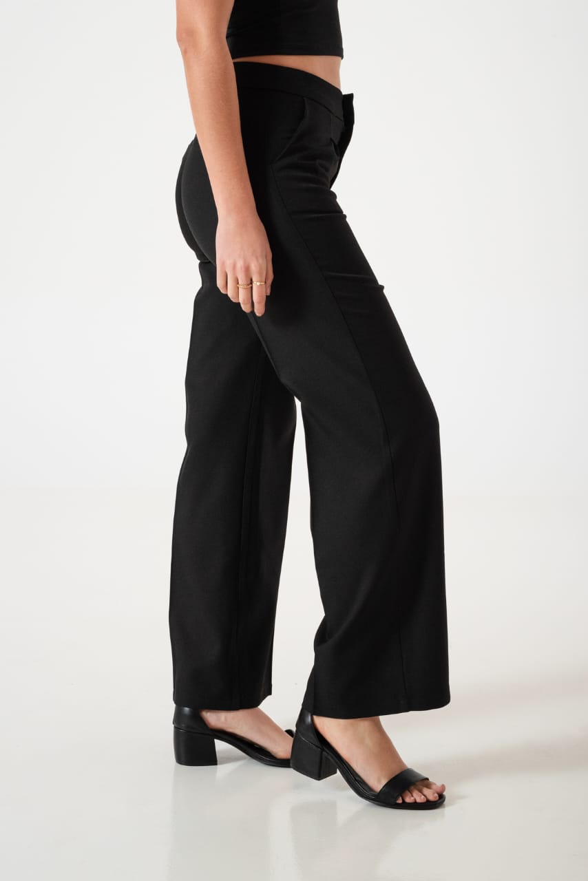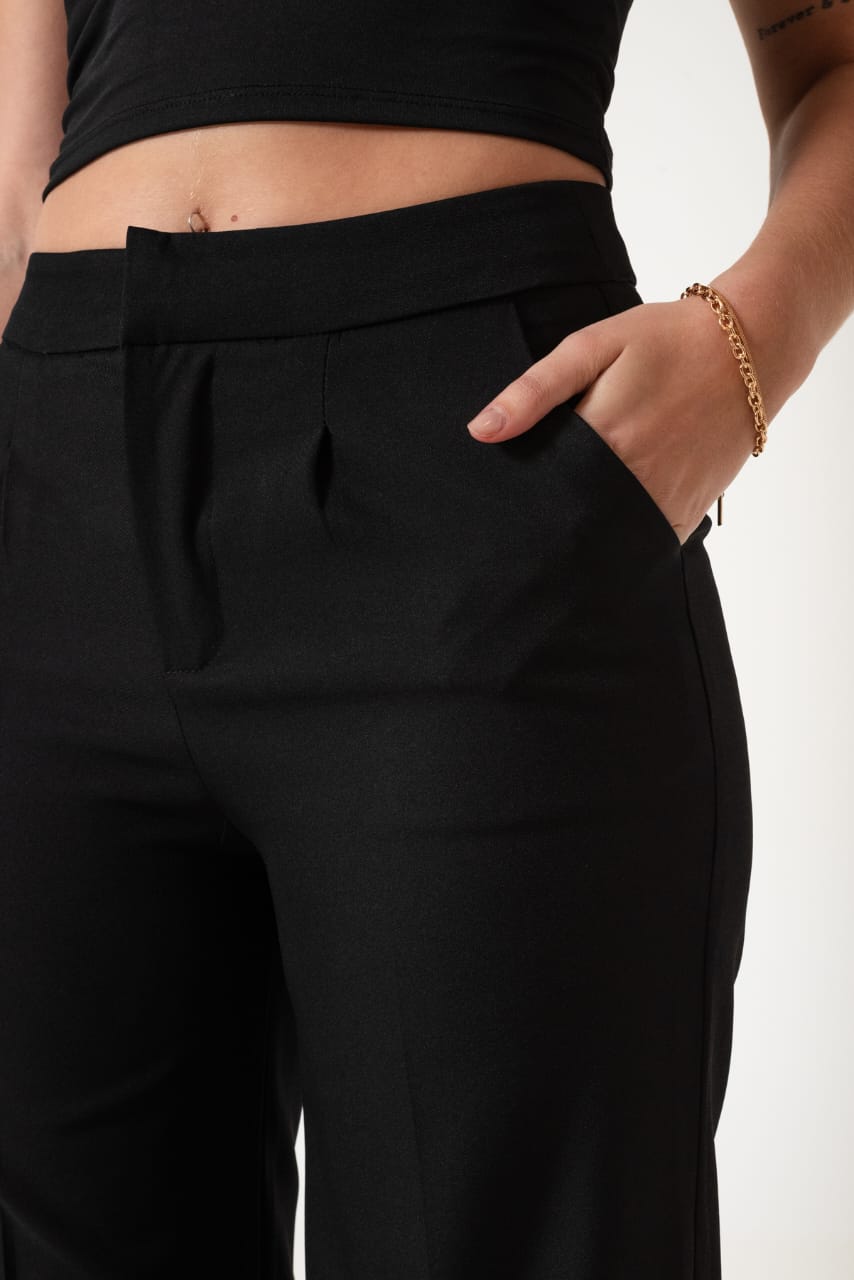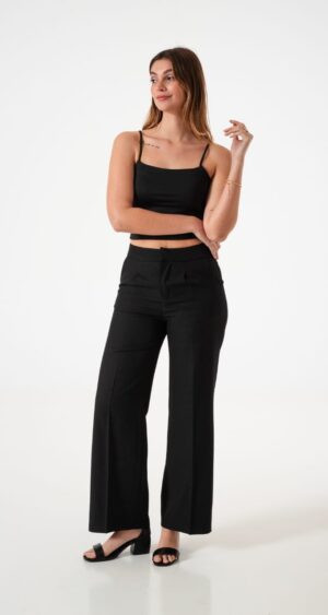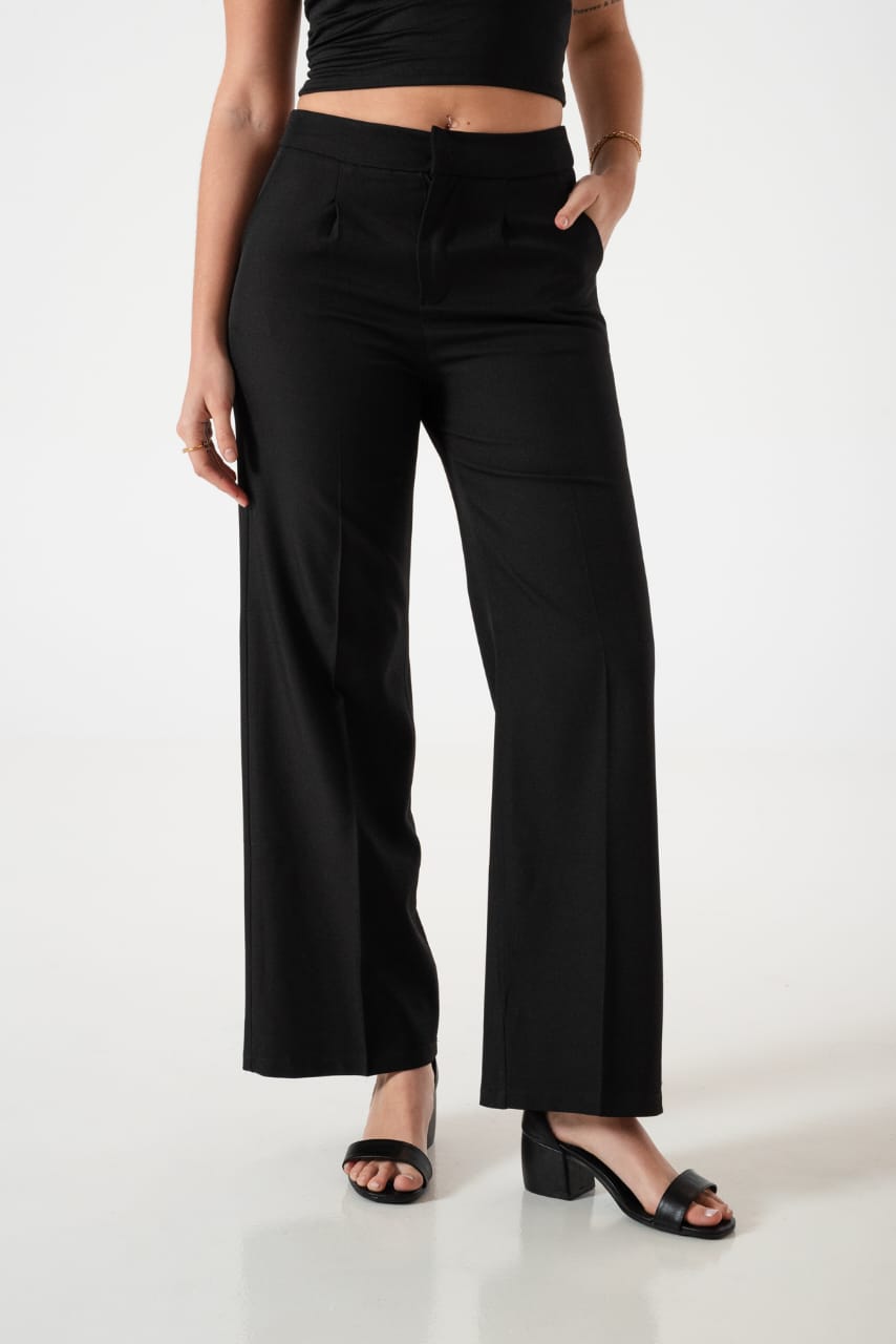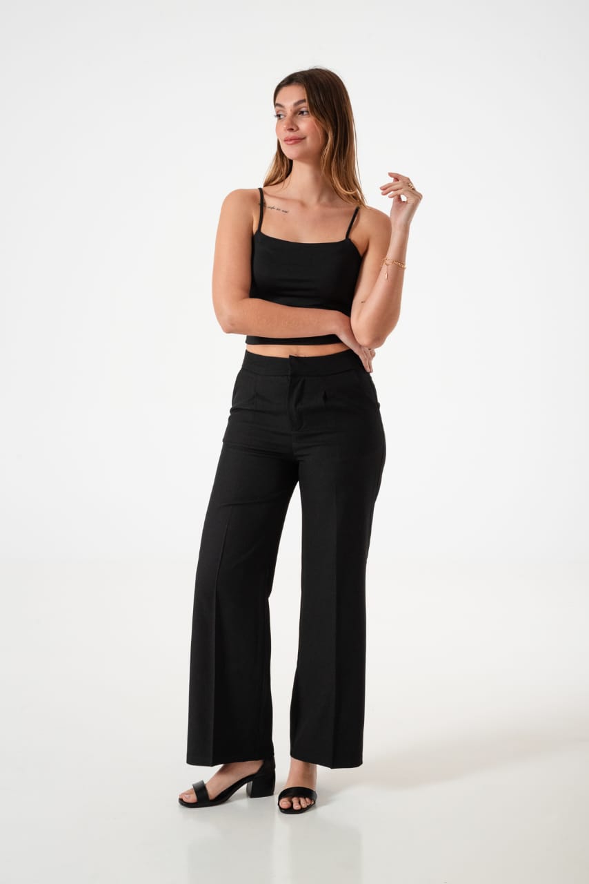 Pantalon estilo palazo confeccionado en tela de sastreria con detalle de pinzas delanteras