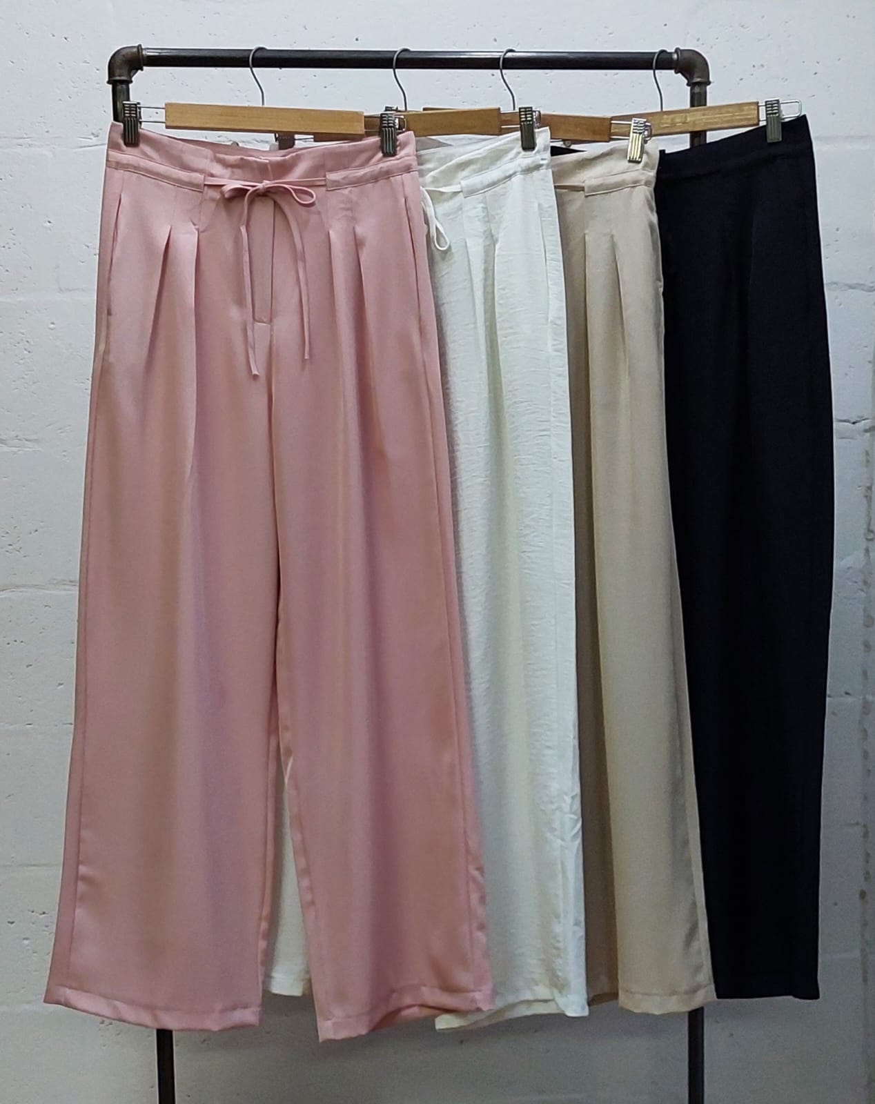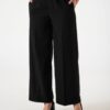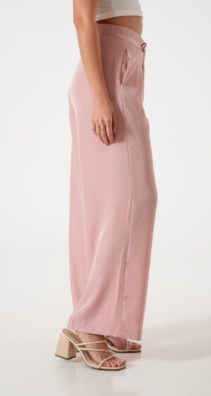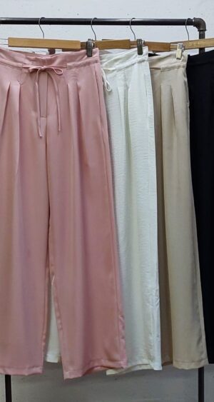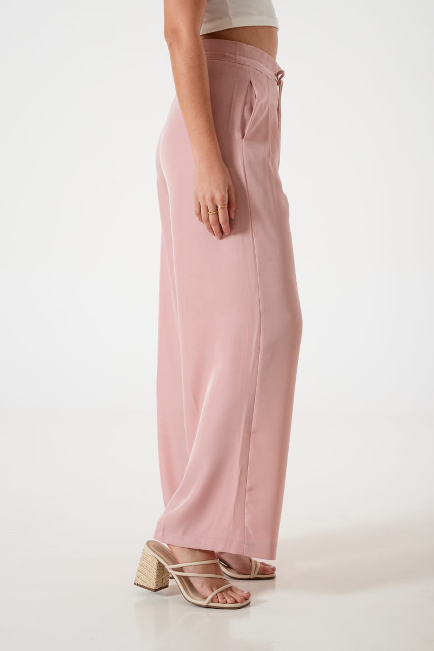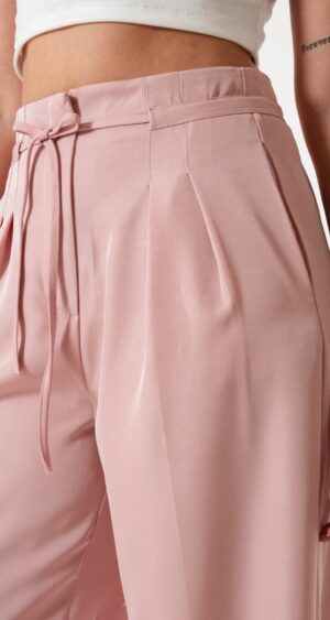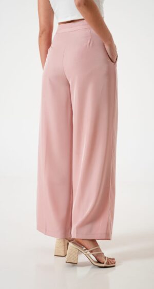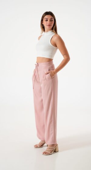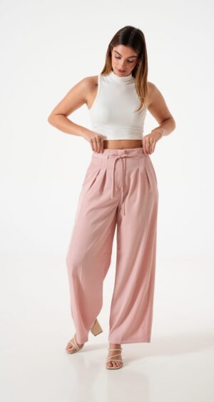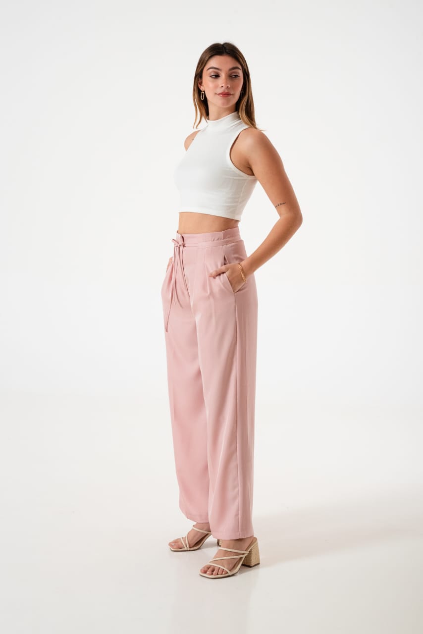 Pantalon estilo palazo confeccionado en tela de sastreria con detalle de tiras, pinzas delanteras y bolsillos