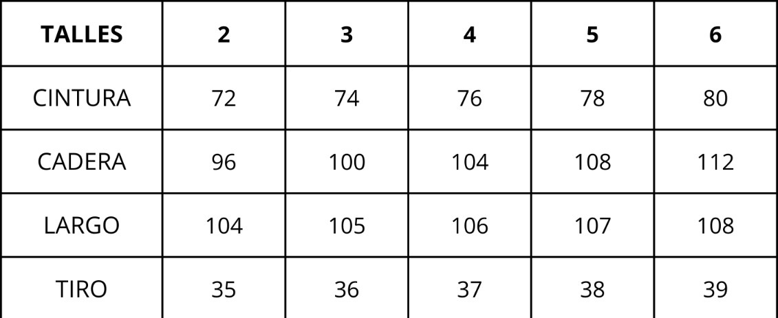 | Talles | 2, 3, 4, 5, 6 |