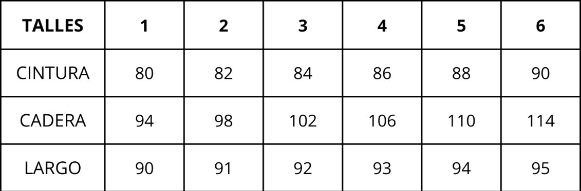 | Talles | 1, 2, 4, 5, 6 |