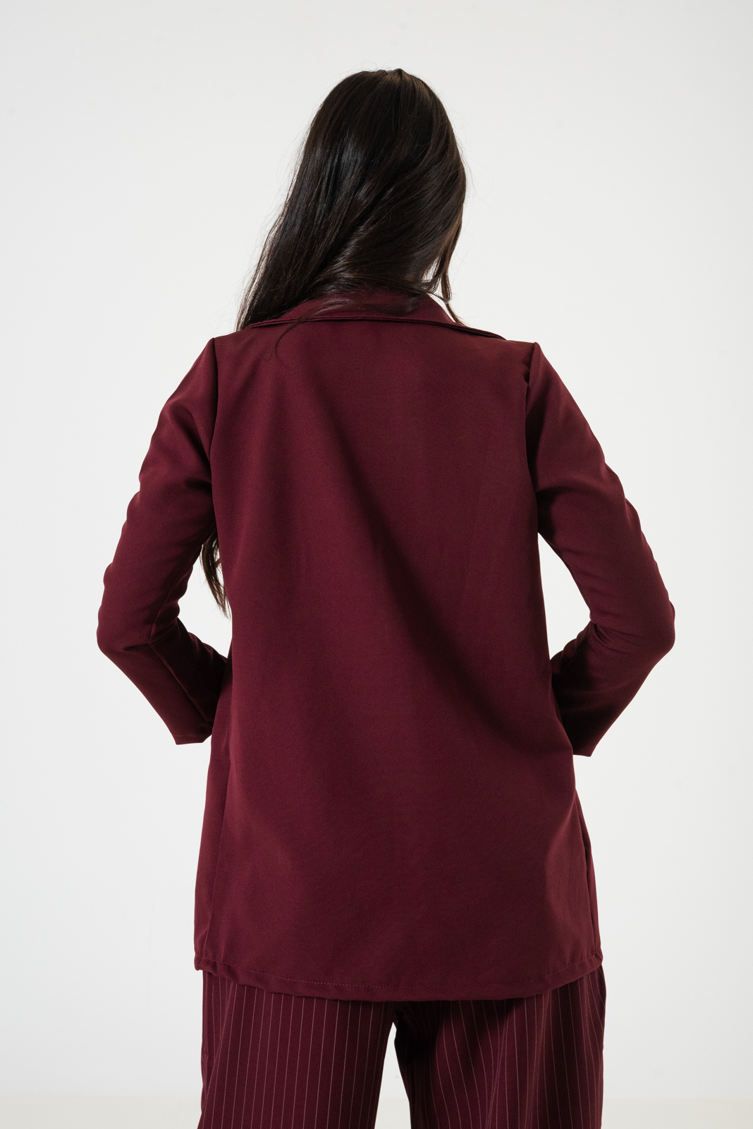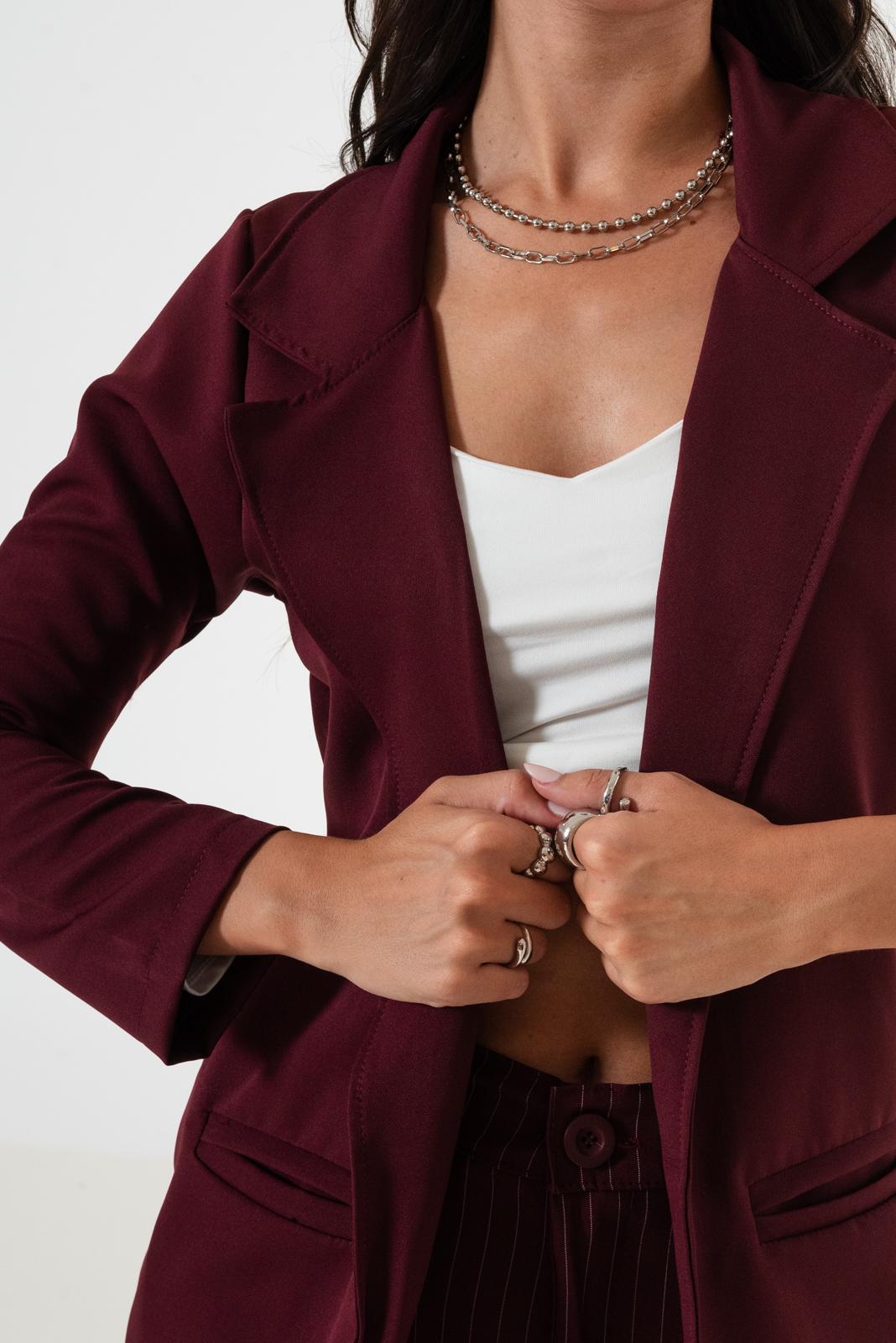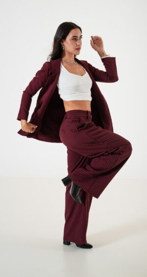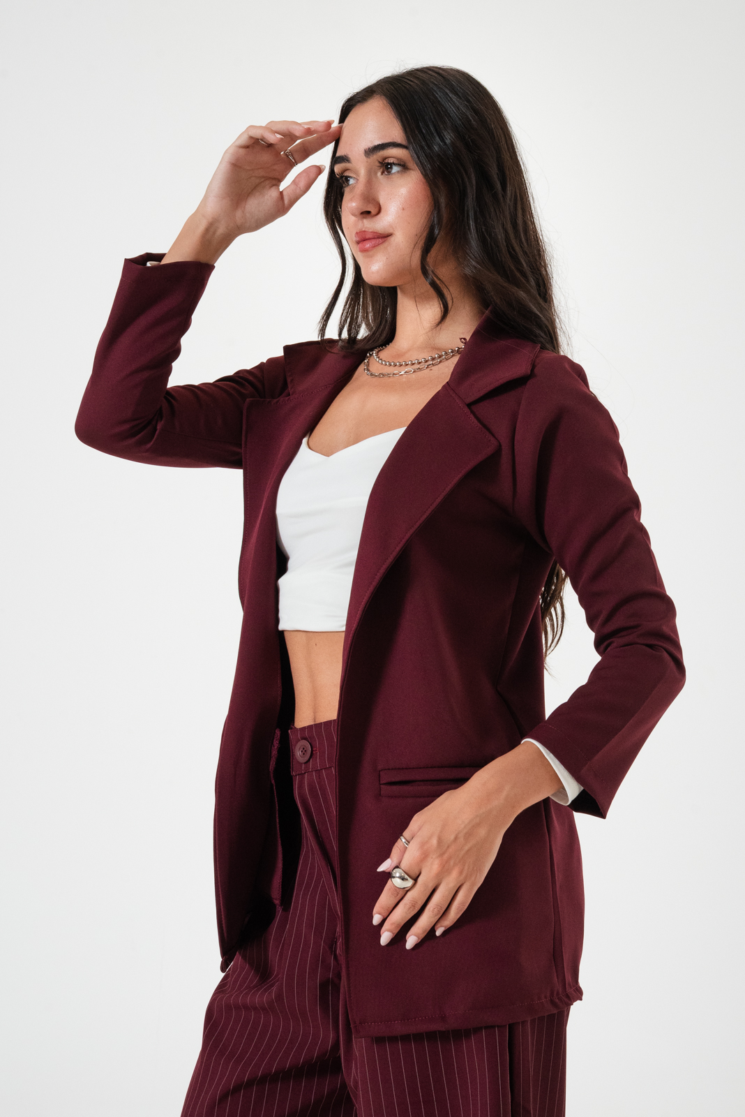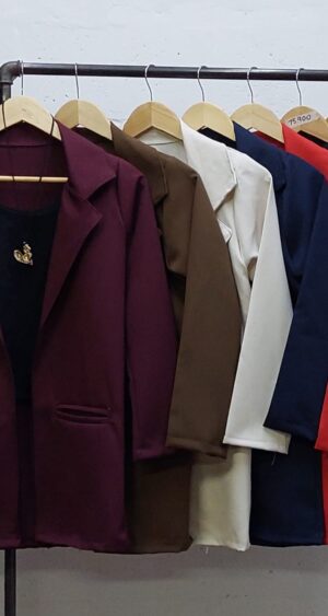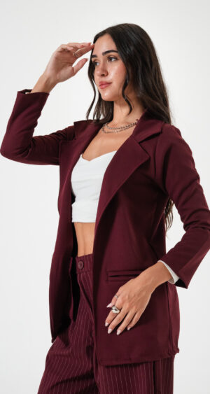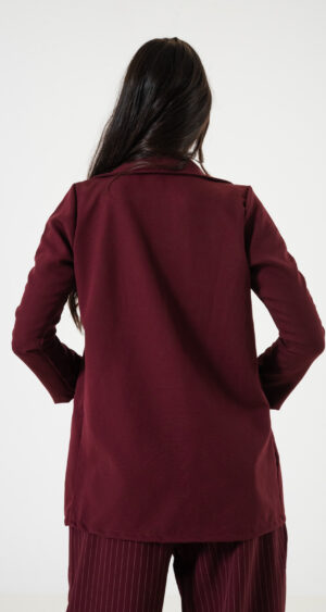 Saco confeccionado en tela de sastrero con detalle de bolsillo chino.