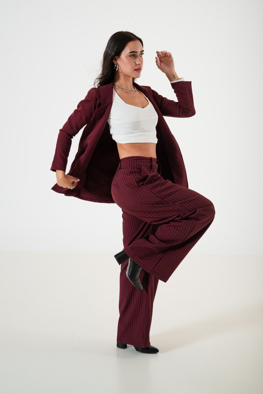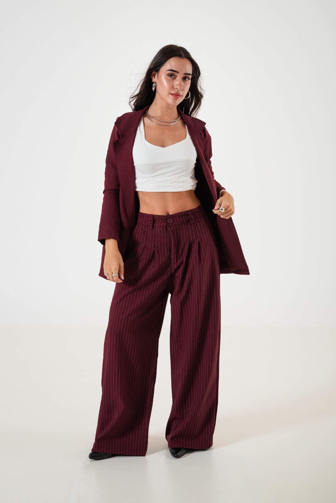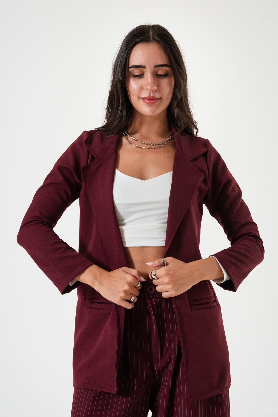Saco confeccionado en tela de sastrero con detalle de bolsillo chino.