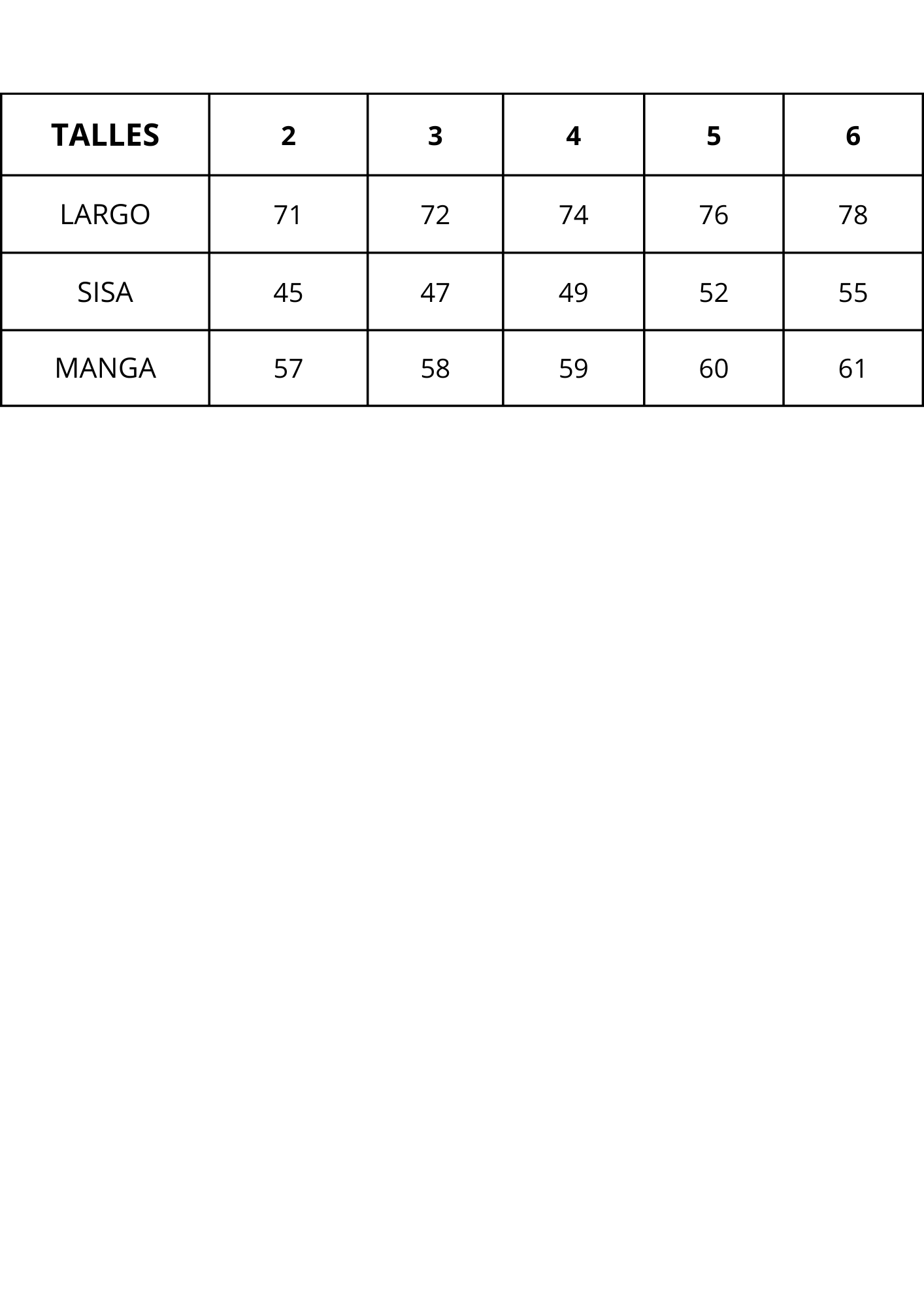 | Talles | 2, 3, 4, 5, 6 |