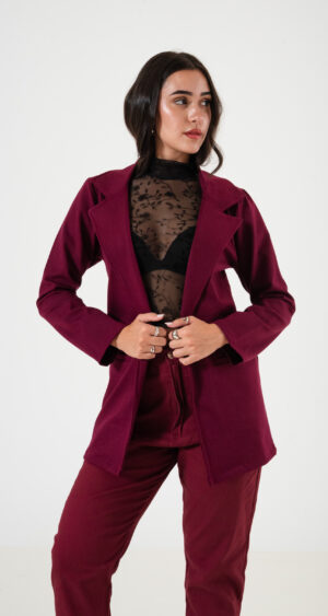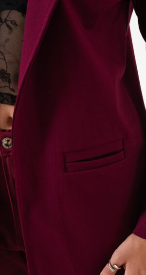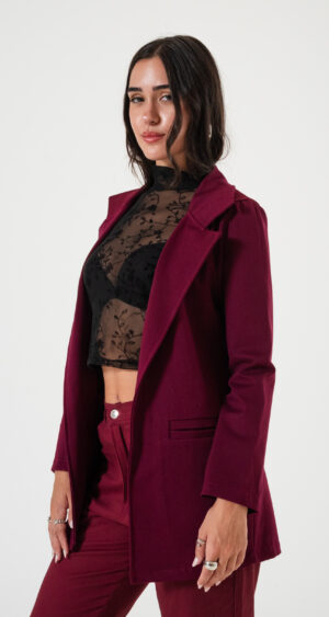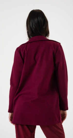 Saco confeccionado en tela de punto roma con detalle de bolsillos chino.